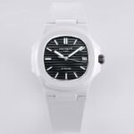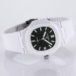 AET remould Patek Philippe ceramic white dial with strap is a 1:1 superclone watch. It is made with the same materials and to the same specifications as the genuine Patek Philippe Nautilus 5711/1A-018, except for the movement, which is a cloned movement instead of the genuine Patek Philippe Calibre 26-330 S C.