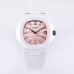 AET remould Patek Philippe ceramic Pink dial with strap is a 1:1 superclone watch. It is made with the same materials and to the same specifications as the genuine Patek Philippe Nautilus 5711/1A-018, except for the movement, which is a cloned movement instead of the genuine Patek Philippe Calibre 26-330 S C.