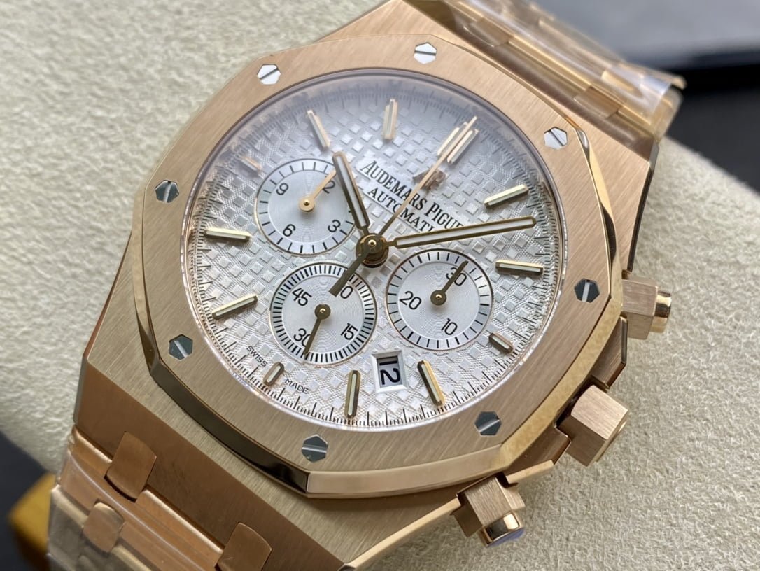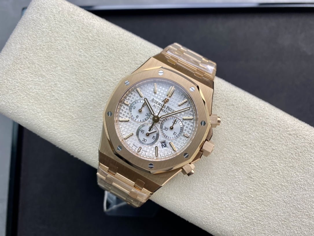 Audemars Piguet Royal Oak Chronograph White Dial Rose Gold on 904L Steel - 1:1 Superclone
