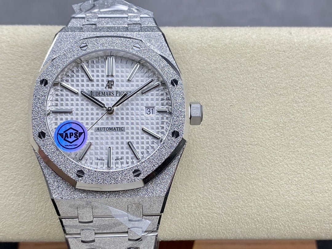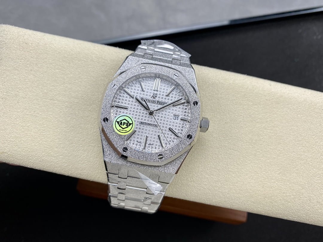 Here are the specifications of the APS factory 15410 Audemars Piguet Royal Oak Frost: