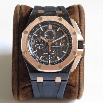 Movement: Base Movement: SWISS 3120 automatic chronograph movement at 28800vph; Decoration: Platinum plated movement plate and rotor which are made according to the genuine movement, the best looking AP Calibre 3126 Movement Clone at the moment.