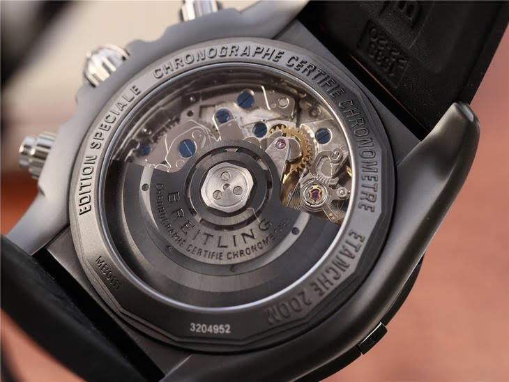 See Through Rear Caseback with Breitling Markings and Engravings.