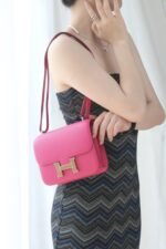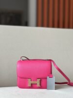 Constance Material: Evercolor (glossy American crocodile buckle) Color: 90 raspberry pink / 1i nude sand color / crocodile buckle Size: 19*15*4cm