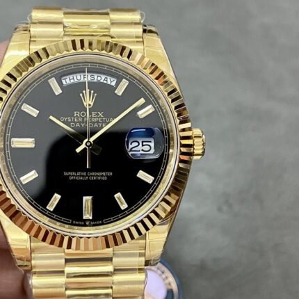 Specifications of the V2 version of 18k gold plated 40 Daydate Rolex Weekly Journal 1:1 Superclone 2836 Movement 40mm Counterweight day date gold face: