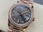 Here are the specifications of the V2 version of 18k gold plated 36mm Daydate Rolex Weekly Journal 1:1 Superclone 2836 Movement 36mm Counterweight day date gold face: