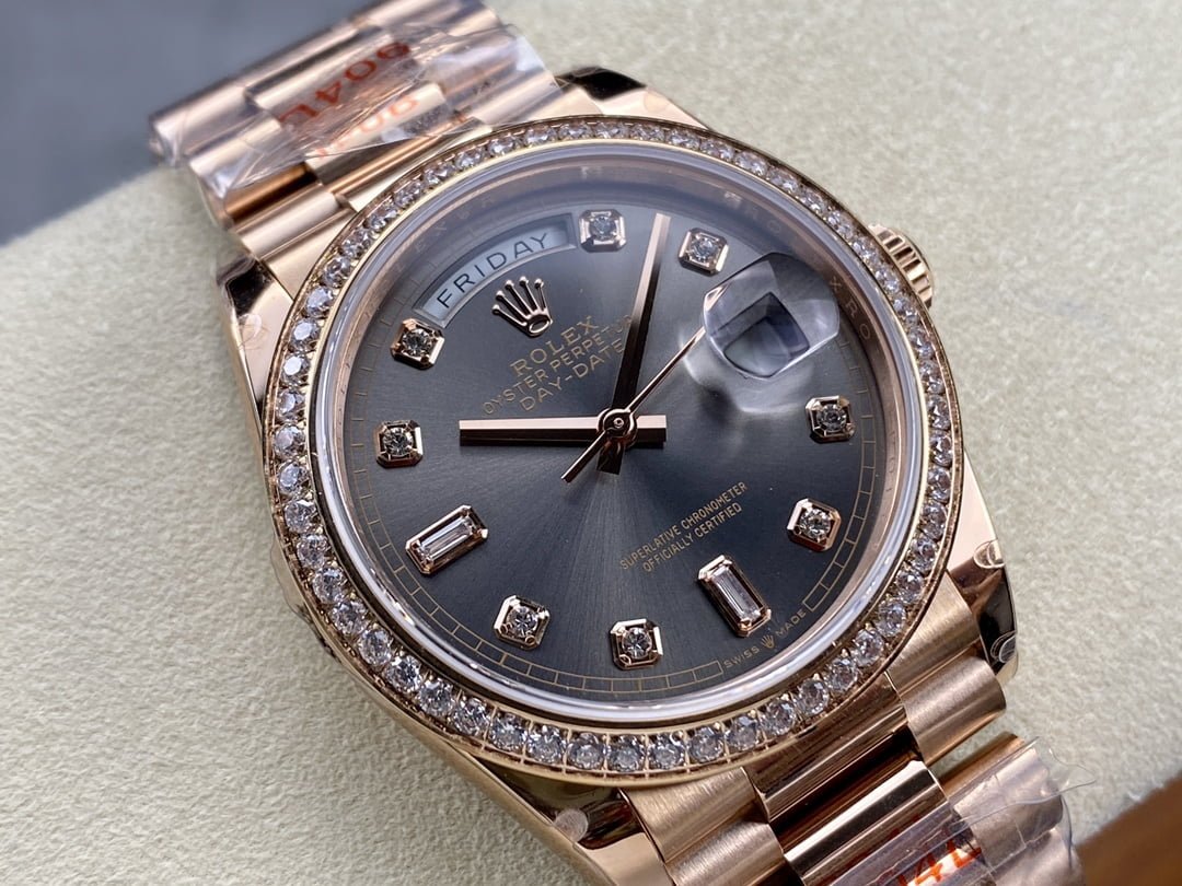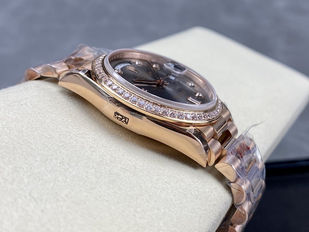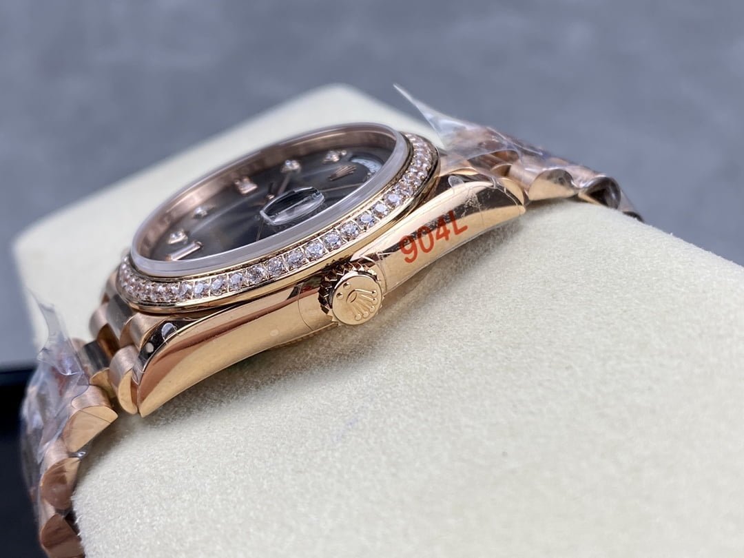 Here are the specifications of the V2 version of 18k gold plated 36mm Daydate Rolex Weekly Journal 1:1 Superclone 2836 Movement 36mm Counterweight day date gold face: