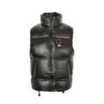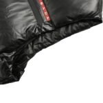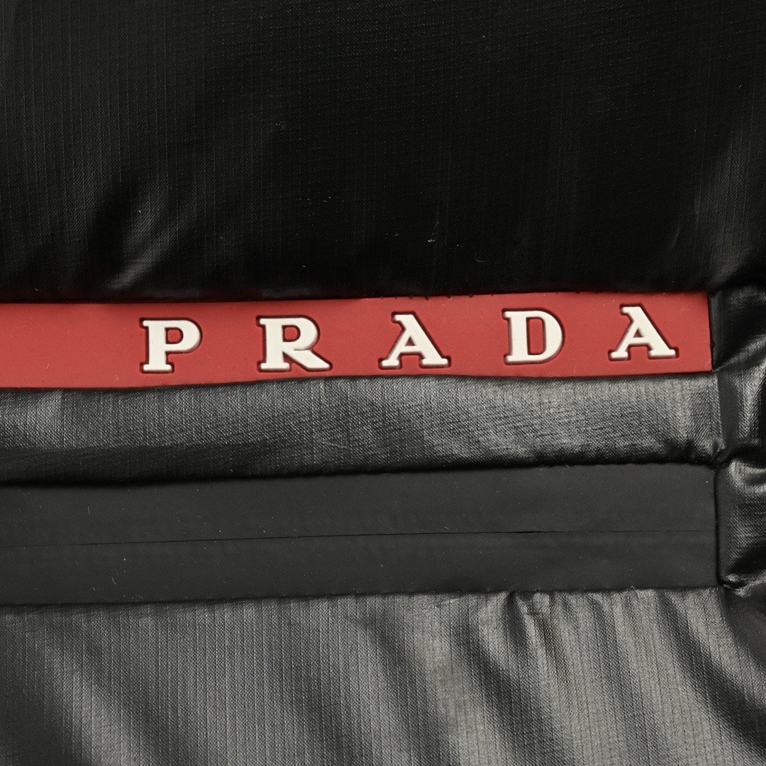 This full-figured down jacket features Prada Linea Rossa’s unique double-layered lightweight bonded nylon fabric, featuring a hooded collar, straight-cut sleeves, and a front zip closure, along with horizontal quilting and an elasticated hem, creates a distinctive silhouette. This lightweight bonded nylon technical fabric boasts high-tech properties such as windproof, abrasion-resistant, waterproof, and breathable properties, making it a multi-functional fabric. The lining is crafted from fine, dense, renewable microfiber fabric, offering a lightweight and soft feel. Goose down and graphene linings help regulate body temperature, providing added functionality. The goose down material gives the lining filling a lighter feel and enhances the garment’s insulation. Size: S-XXL