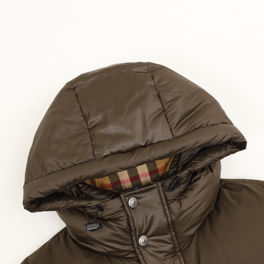 | Burberry hooded down jacket with contrasting tape and logo. Lined with classic check for a truly stunning look. Super filling. Complete with original hardware.