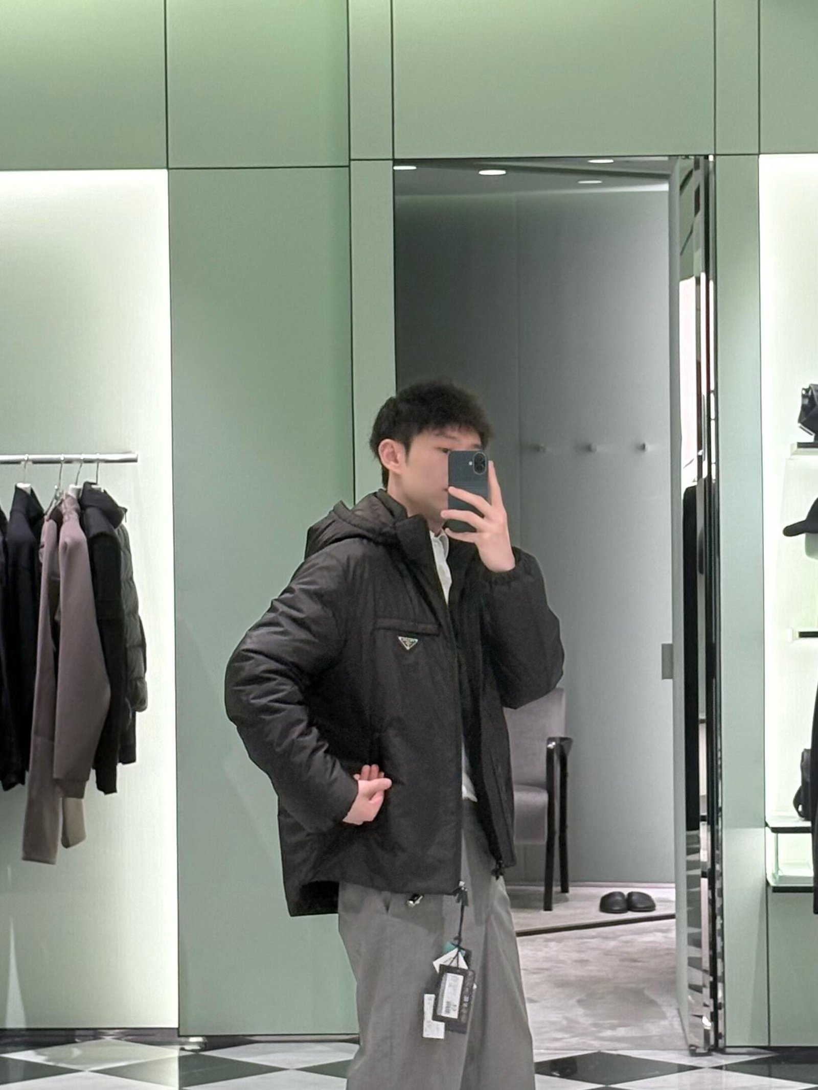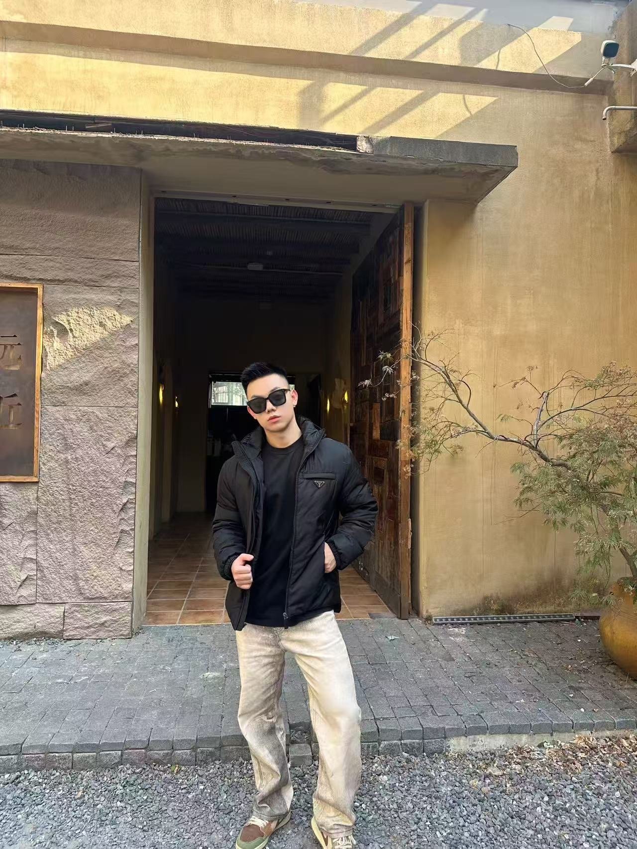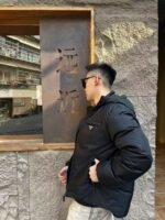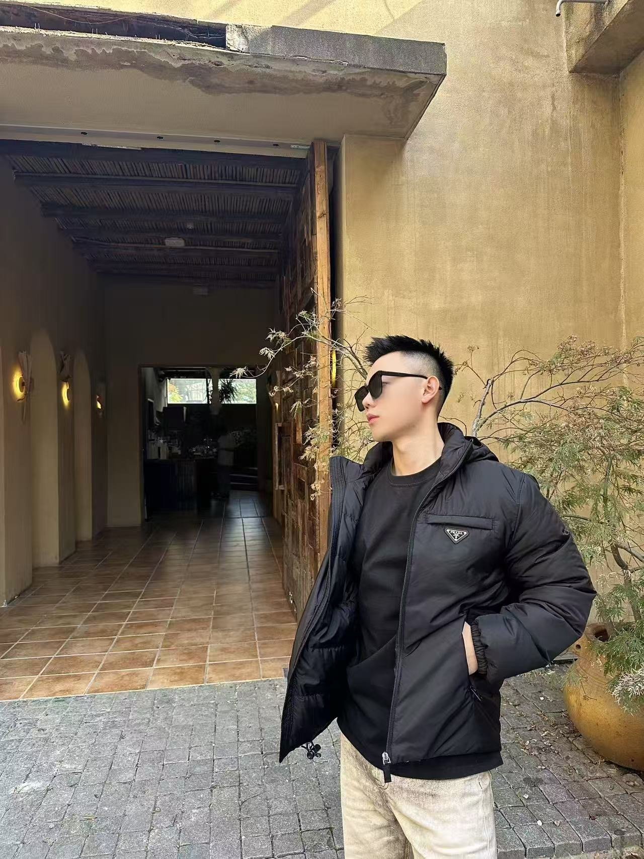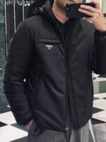#Prada/Prada Triangle Logo Recycled Nylon Hooded Down Jacket – On-body Look