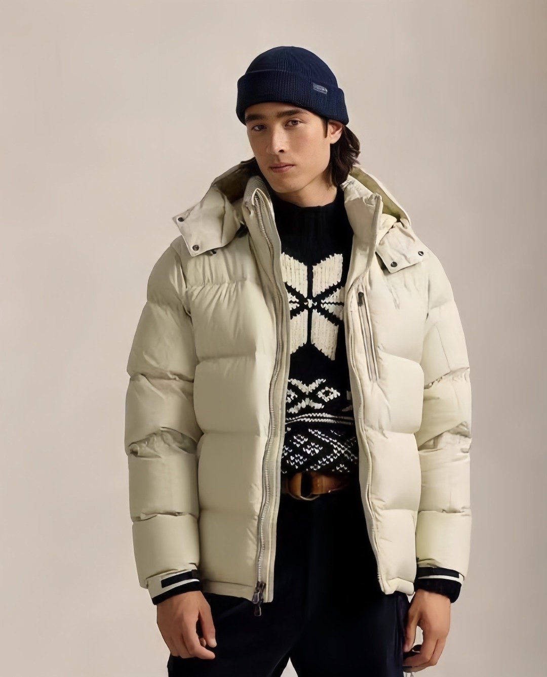 Ralph Lauren YU09 Pony Embroidered Hooded Down Jacket – Beige