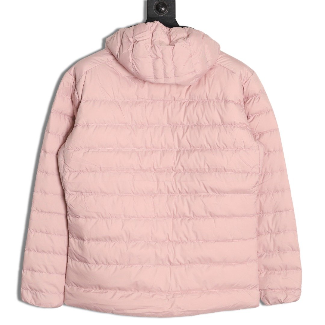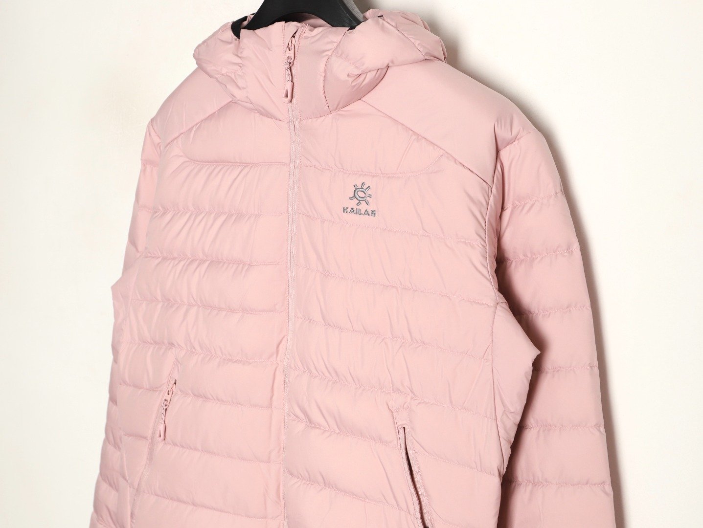 This down jacket is made of lightweight, splash-resistant, breathable fabric