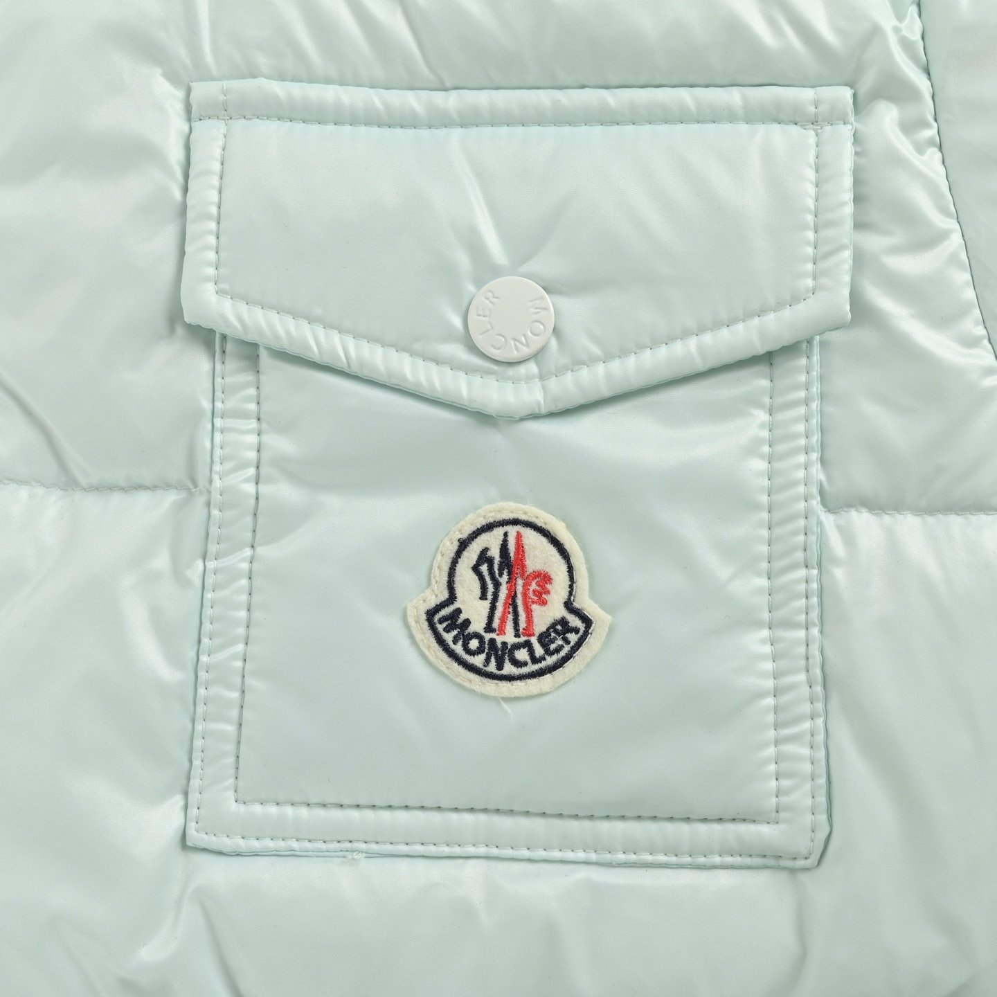 – Overall Style: The overall design is simple and stylish. The cropped silhouette is both smart and easy to move around in, making it suitable for everyday wear and a variety of occasions. Hood: The fully padded hood provides additional head protection while retaining warmth, enhancing the overall stylish look. Pocket Details: A flap pocket on the left chest is embellished with Moncler’s iconic brand emblem, adding brand recognition and a design highlight. Zipper Closure: The front zipper closure is easy to operate and complements the overall minimalist style.