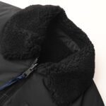 Custom-made soft matte nylon fabric, computer-controlled mechanical down filling. The process prioritizes creating an inner lining pattern to determine the down weight per square meter based on the original 3D effect, thus calculating the down filling amount for each piece. The computer-controlled down filling machine uses a digital weighing unit for stable measurement. The computer-controlled template machine produces extremely high neatness and smoothness in its stitching. The craftsmanship involves precise size control during operation to ensure each stitch meets design requirements. The entire template has smooth, uniform, neat, and aesthetically pleasing lines. Ergonomic 3D cutting is complex, tedious, slow, and results in high waste. Manual repacking and opening of the bags are used. For the high-density, heavy teddy bear fleece fabric, a special needle is used to precisely lift the 3D structure of the bag opening on the back of the fabric. The process involves two stages: single-layer basic shaping and multi-layer edge reinforcement. Custom-made accessories, reversible.