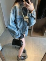 Miu Miu 24Fw Miu alphabet patch embroidered denim jacket