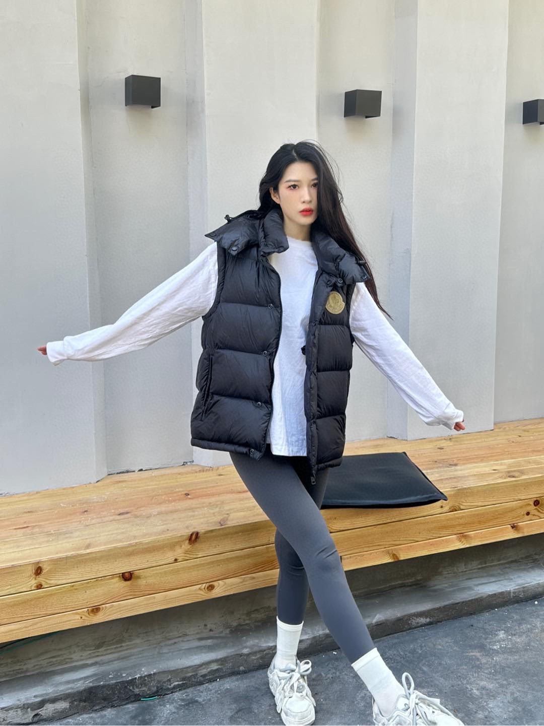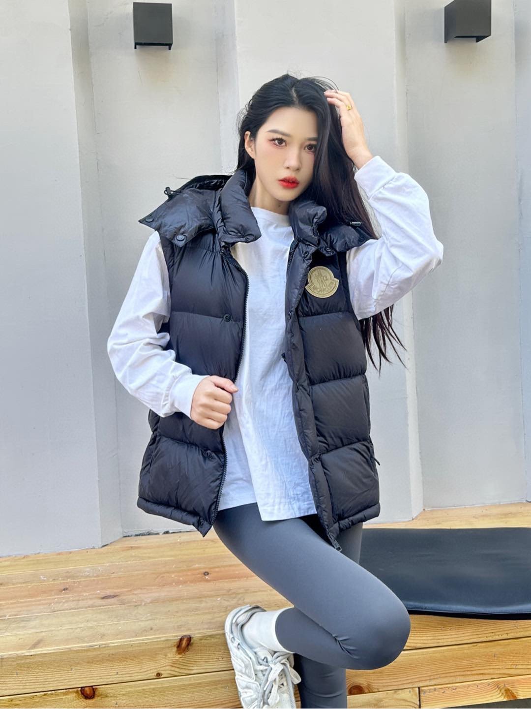 Moncler / Moncler 24Fw CYCLONE large logo detachable sleeve hooded down jacket upper body effect#