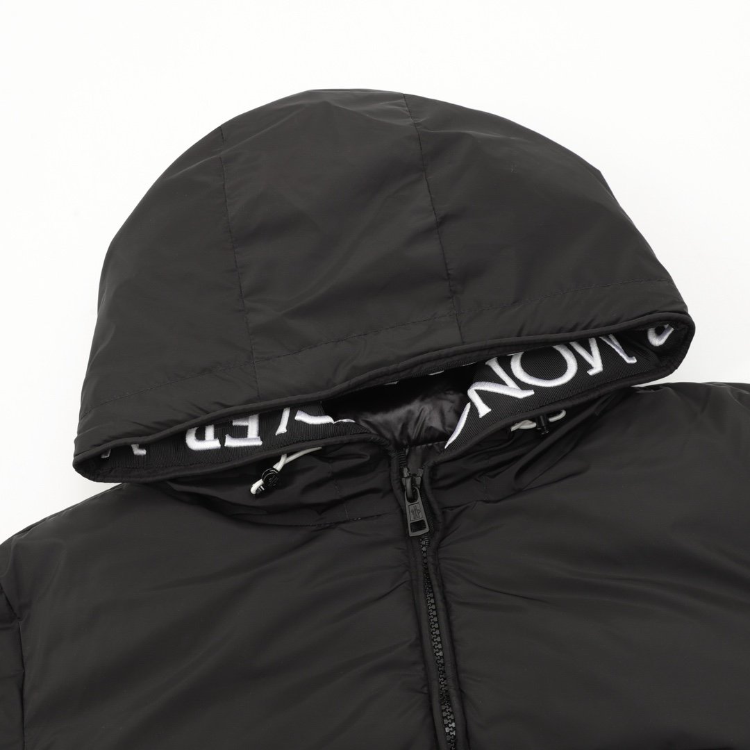 Moncler’s 21st-century stylish hooded down jacket features an embroidered logo on the lining placket. Available in unisex styles, it’s the perfect couple’s piece. This revival of the ’80s jacket design features a cotton fabric with a spliced hood and yoke. The hood features an embroidered logo webbing inside, and the large zippered pocket houses two smaller pockets, perfect for keeping your hands safe and practical. The outer layer is made of imported 12D nylon with a density of 420t and a windproof and water-resistant finish. The filling is 90% white goose down and 10% feathers, weighing over 400g. The thick, high-loft, high-fill down feels fluffy and delicate, providing a lightweight feel while offering excellent warmth. The hooded design combines youthful energy with warmth. The embroidery on the hood adds a touch of class! The placket zips smoothly and offers added protection from the elements. The classic black and white colors can be worn with jeans for daily wear. A simple combination can create a different look. This is a very special down jacket that is suitable for cold areas in the north. It is a must-have in winter!