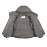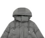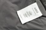 The outer fabric is made of double-layer lightweight bonded polyester fabric, and the lining is made of renewable microfiber. The overall fabric is soft, lightweight, windproof, waterproof, highly breathable, and warm. It features an oversized hood with custom-made 32-strand thickened drawstrings, a custom-molded bell-shaped hood, hand-stitched cuffs, and high-density knitted ribbed cuffs with a faux two-piece design. Color, size, and specifications are all accurate. The lining is filled with 50g of down, with an average fill weight of approximately 500g per jacket. All hardware is custom-molded and engraved. The placket features a white brass engraved YKK zipper, and the hem elastic adjustment buckle and drawstring holes are all engraved with AMI. The placket snaps are all COBRAX buttons. The accessories are of the highest quality, comparable to top-tier finishes. The left arm features a high-density AMI classic heart embroidery woven with a special dark blue-black yarn, not pure black. The neck label is a special beige woven fabric label, not a twill label. It has a double hangtag design, and all accessories are independently developed. The country of origin and washing label are located inside the lining pocket. The attention to detail is off the charts.