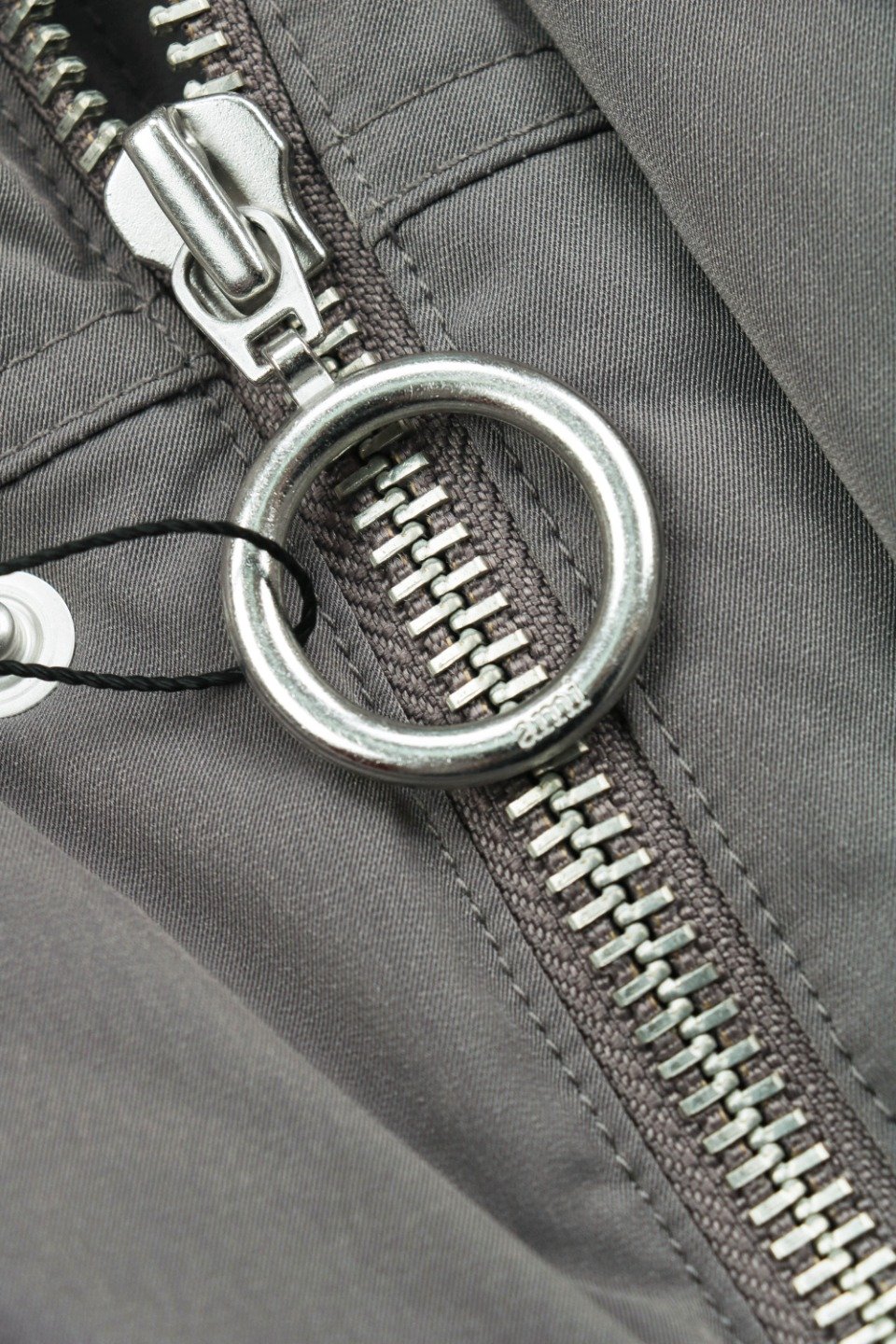 The outer fabric is made of double-layer lightweight bonded polyester fabric, and the lining is made of renewable microfiber. The overall fabric is soft, lightweight, windproof, waterproof, highly breathable, and warm. It features an oversized hood with custom-made 32-strand thickened drawstrings, a custom-molded bell-shaped hood, hand-stitched cuffs, and high-density knitted ribbed cuffs with a faux two-piece design. Color, size, and specifications are all accurate. The lining is filled with 50g of down, with an average fill weight of approximately 500g per jacket. All hardware is custom-molded and engraved. The placket features a white brass engraved YKK zipper, and the hem elastic adjustment buckle and drawstring holes are all engraved with AMI. The placket snaps are all COBRAX buttons. The accessories are of the highest quality, comparable to top-tier finishes. The left arm features a high-density AMI classic heart embroidery woven with a special dark blue-black yarn, not pure black. The neck label is a special beige woven fabric label, not a twill label. It has a double hangtag design, and all accessories are independently developed. The country of origin and washing label are located inside the lining pocket. The attention to detail is off the charts.