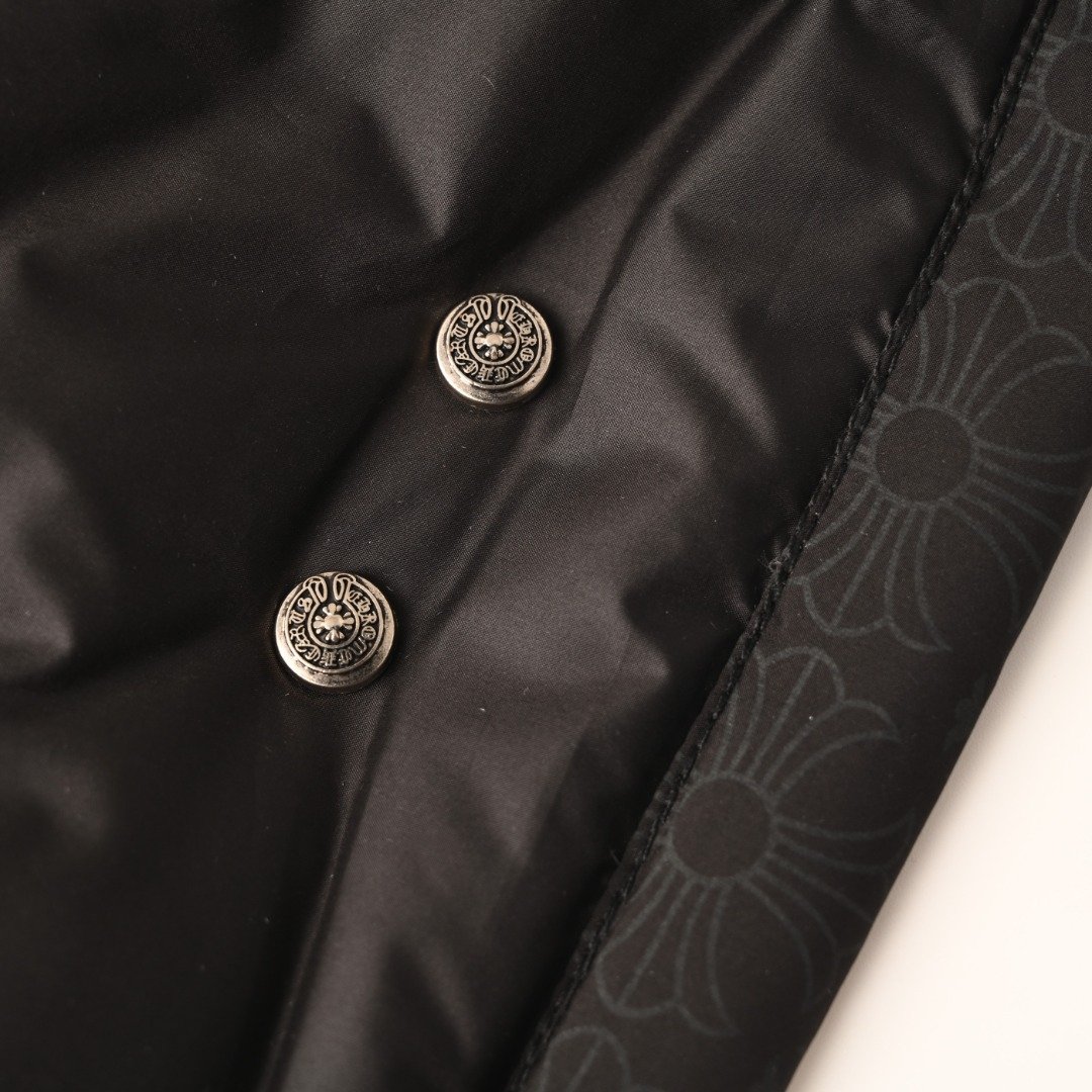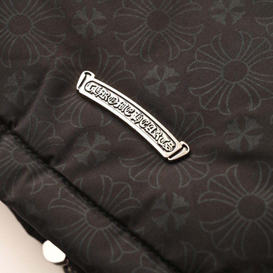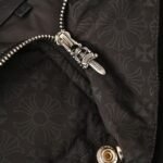 This vest features a unique hidden jacquard pattern crafted from high-quality fabric that is waterproof, stain-resistant, and breathable. The down filling is rich and evenly distributed, ensuring excellent warmth. Filled with 90% white duck down, Chrome Hearts’ signature hidden pattern enhances the garment’s aesthetics. Features like windproof cuffs and an adjustable hem enhance both comfort and convenience. Zippers, buttons, and other hardware are made of high-quality materials, resulting in a smooth, burr-free surface for smooth, durable use.