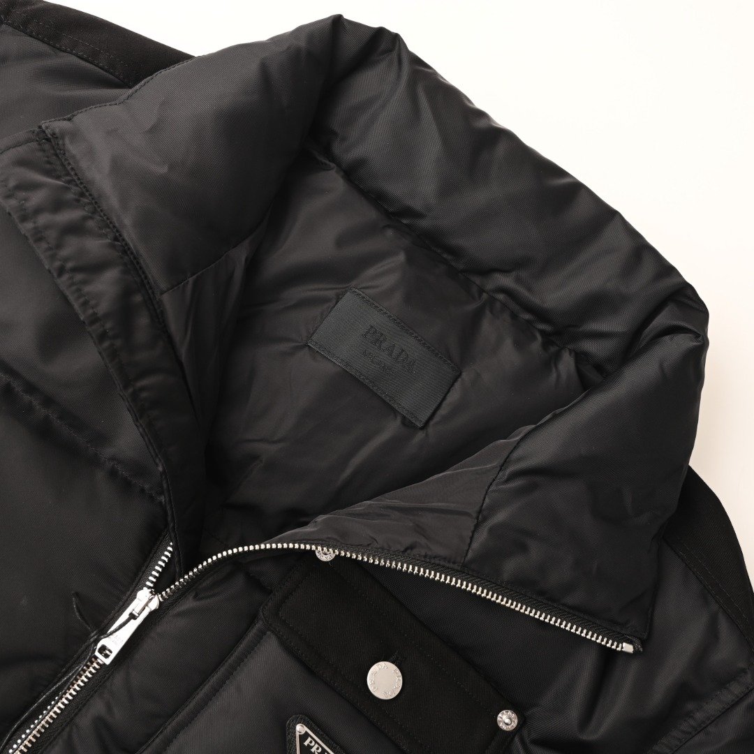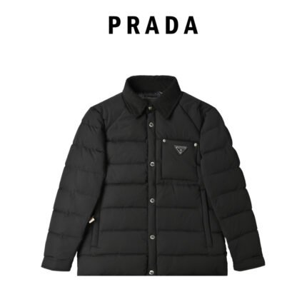 PRADA PRD Nylon Logo Flap Pocket Stand Collar Down Jacket