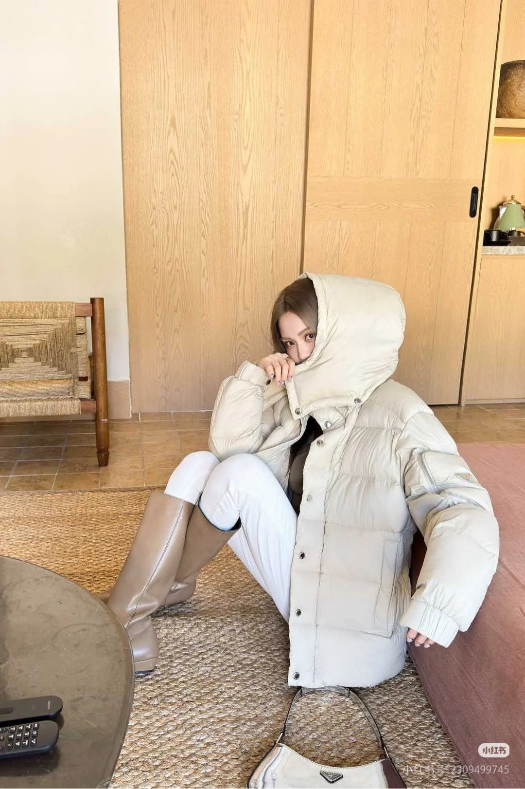 #Prada 25Fw Hooded Down Jacket with Triangle Logo Pockets on the Arm – How it Looks When Worn