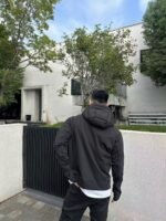 #Moncler & RICK OWENS Collaboration Hooded Down Jacket with Patchwork Sleeves – On-body Look