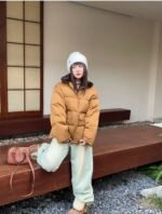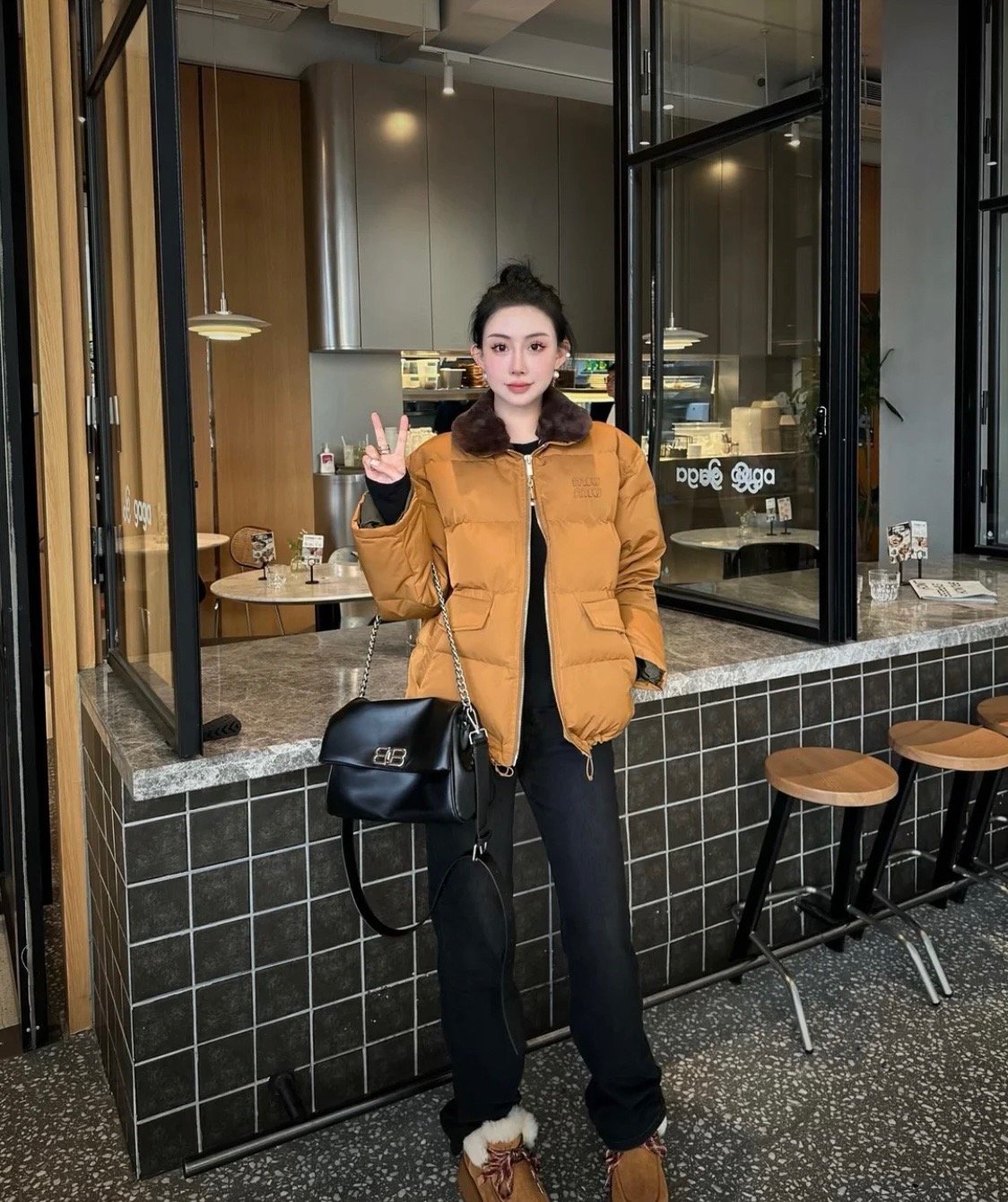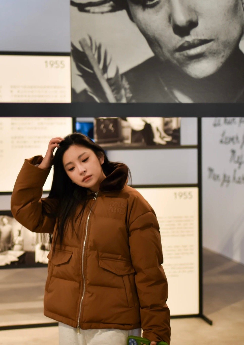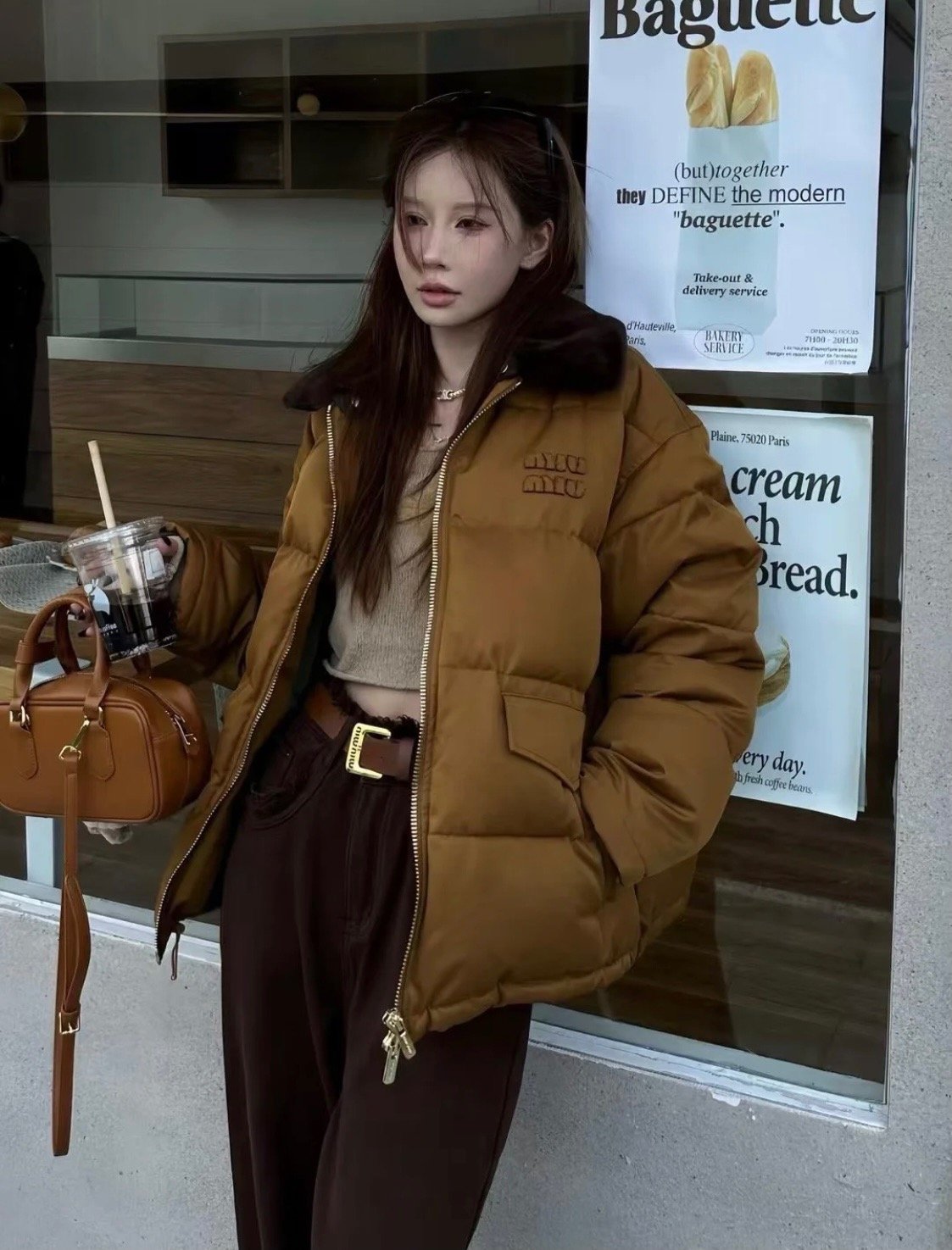 #Miu Miu/缪缪24Fw Down Jacket with Appliqué Label and Fur Collar – How it Looks When Worn