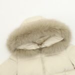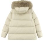 Laichefur down jacket is designed to be both feminine and practical, suitable for all-day wear. It features a hood and is made from brushed polyester fabric with an elegant matte finish. The detachable wool collar provides warmth and protection in various environments.