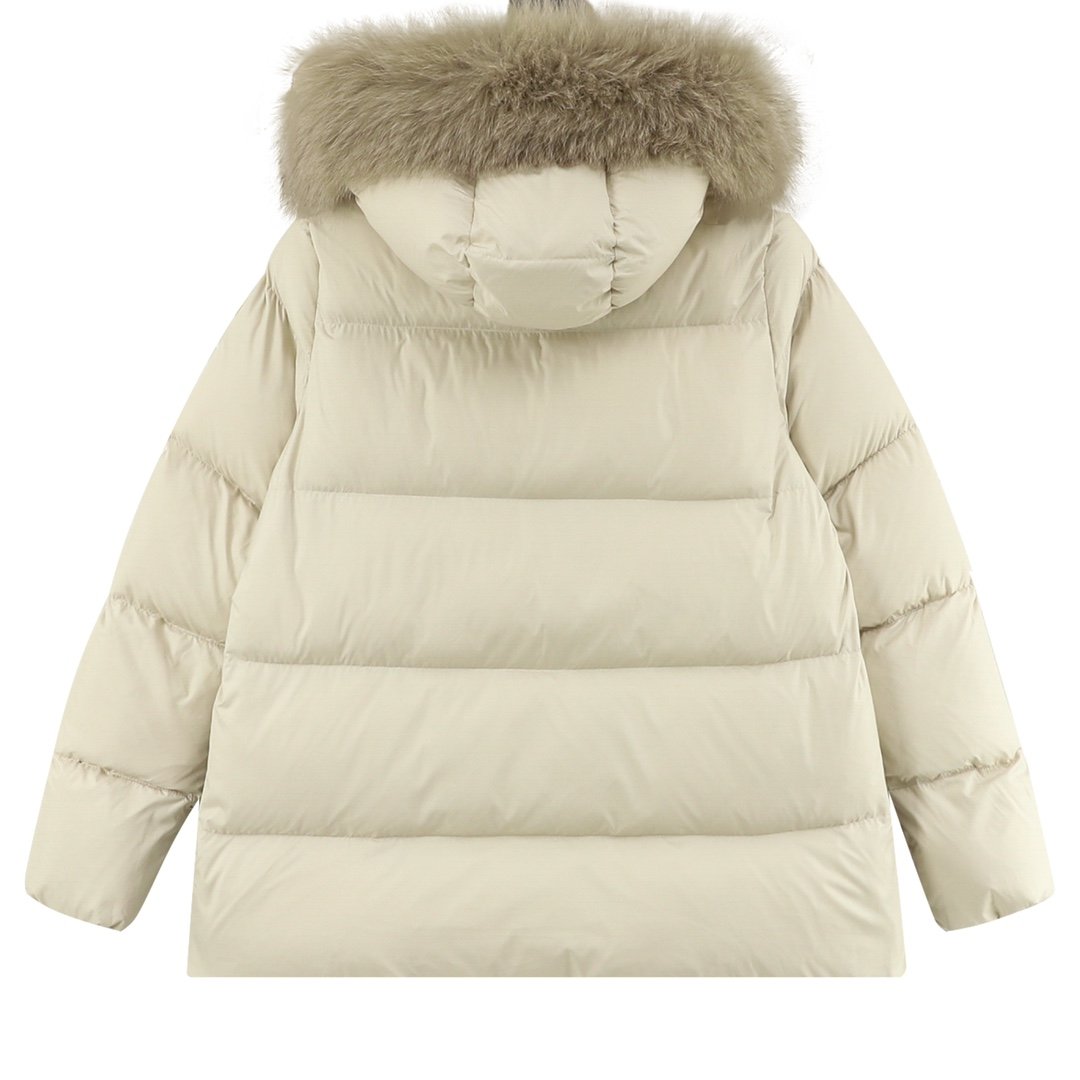 Goose down filling. Oversized fur collar. Original replacement fabric + original hardware. Complete hangtag, barcode, and style number, matching the official website. Hangtag has built-in NFC electronic anti-counterfeiting label.
