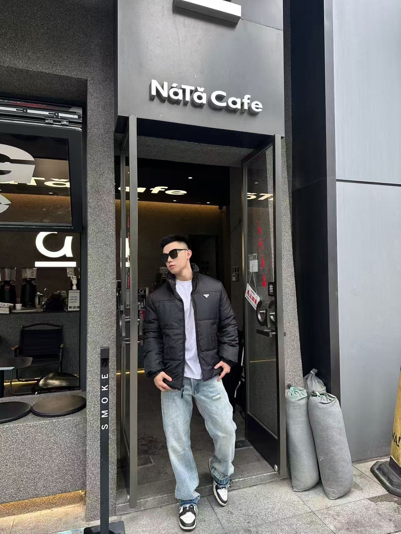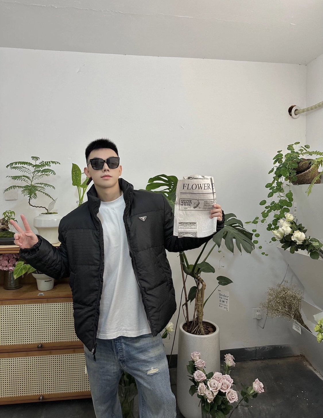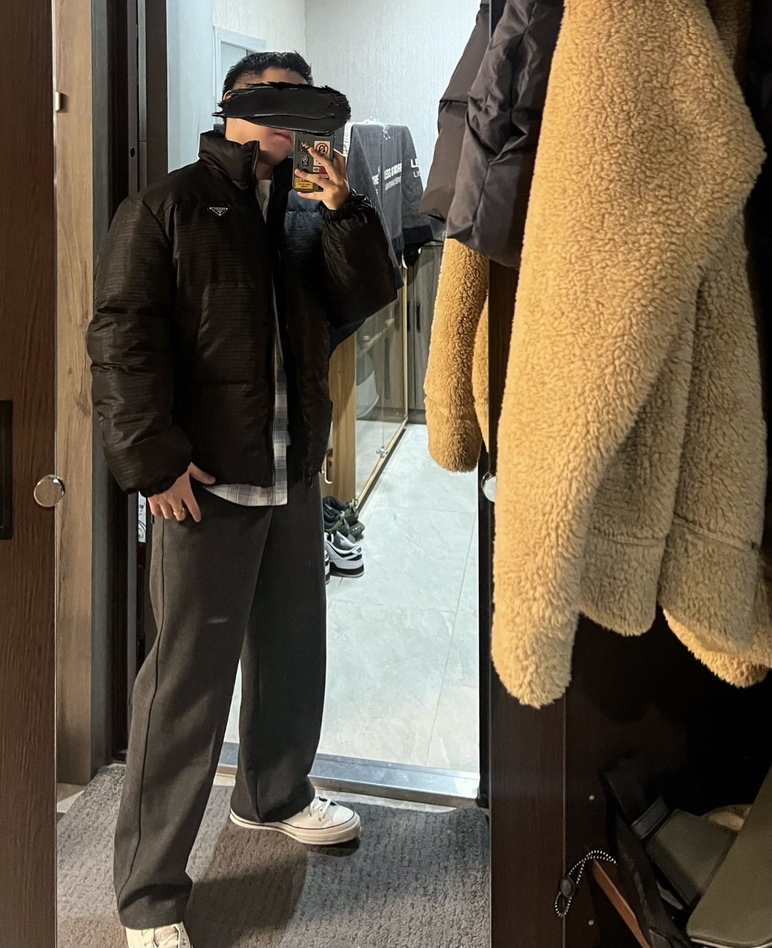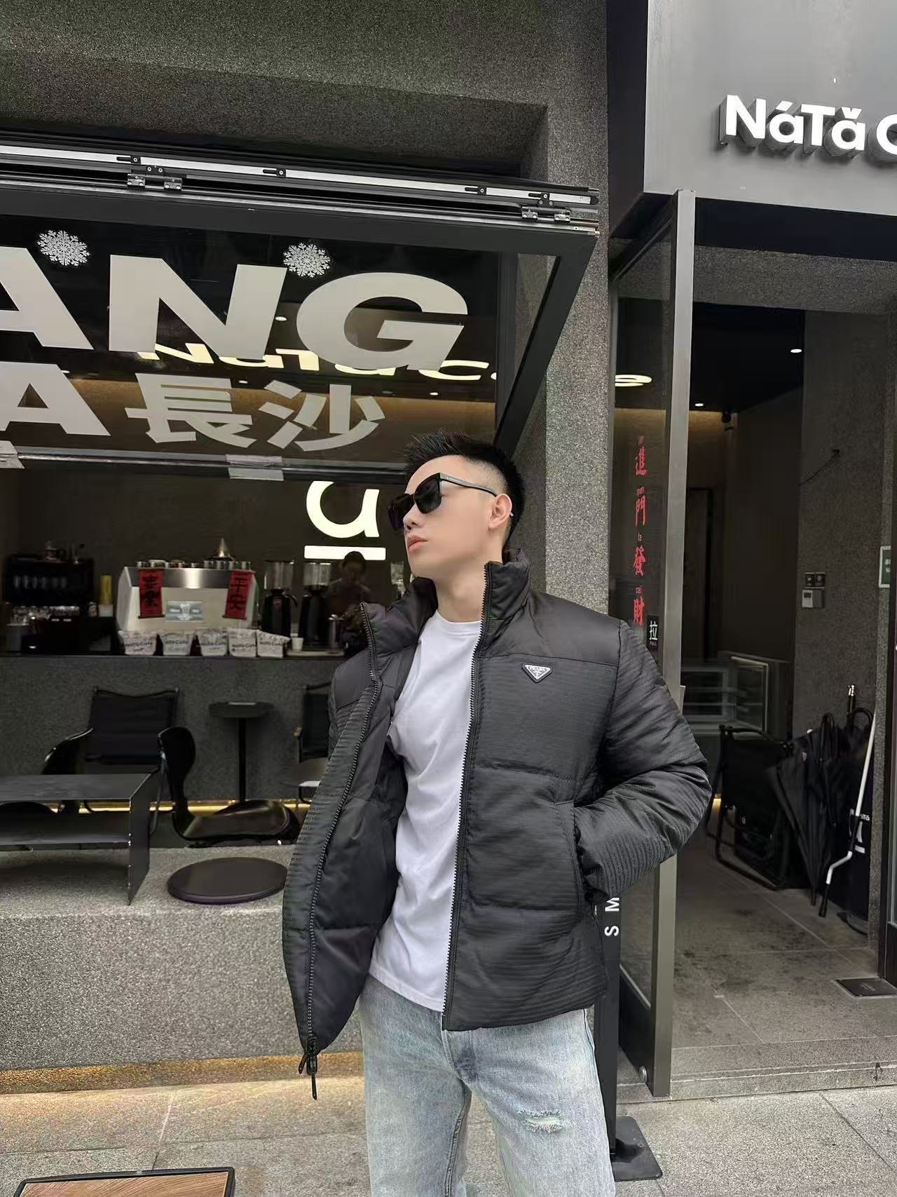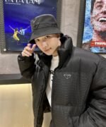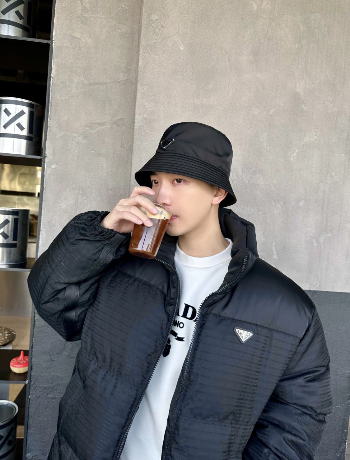 #Prada/Prada Reversible Down Jacket with Dark Pattern Jacquard – How it Looks When Worn