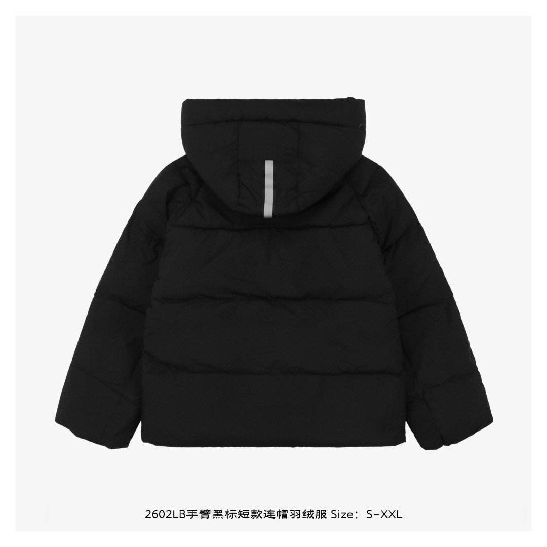 Cantonese 2602LB Short Hooded Down Jacket with Black Label on Arm