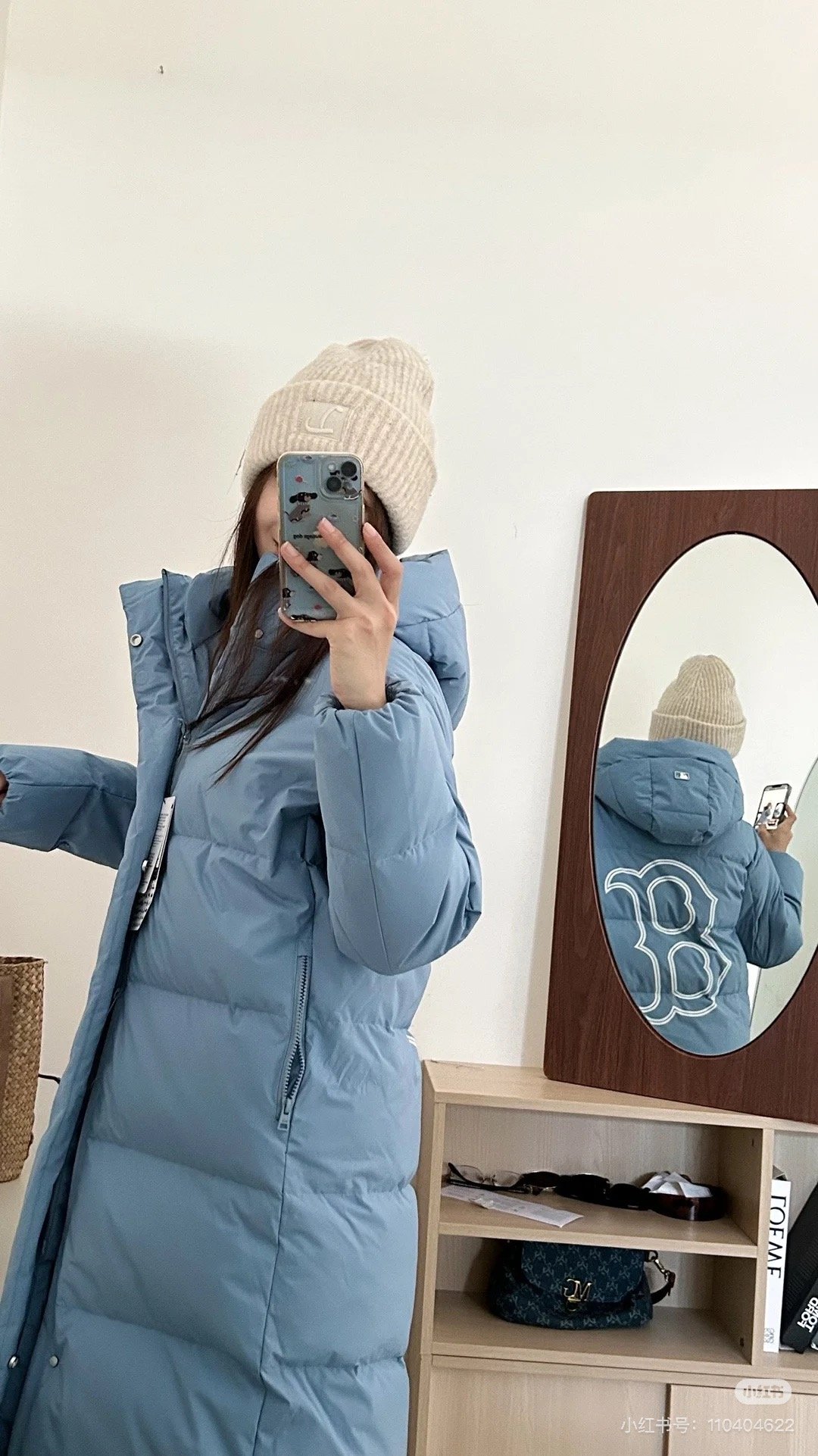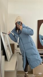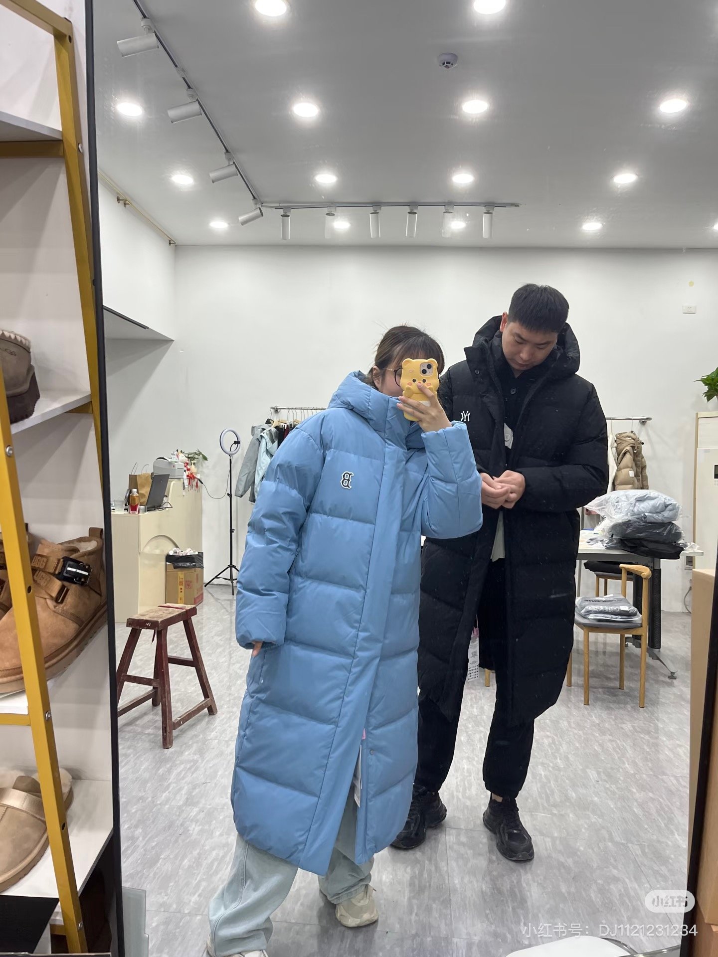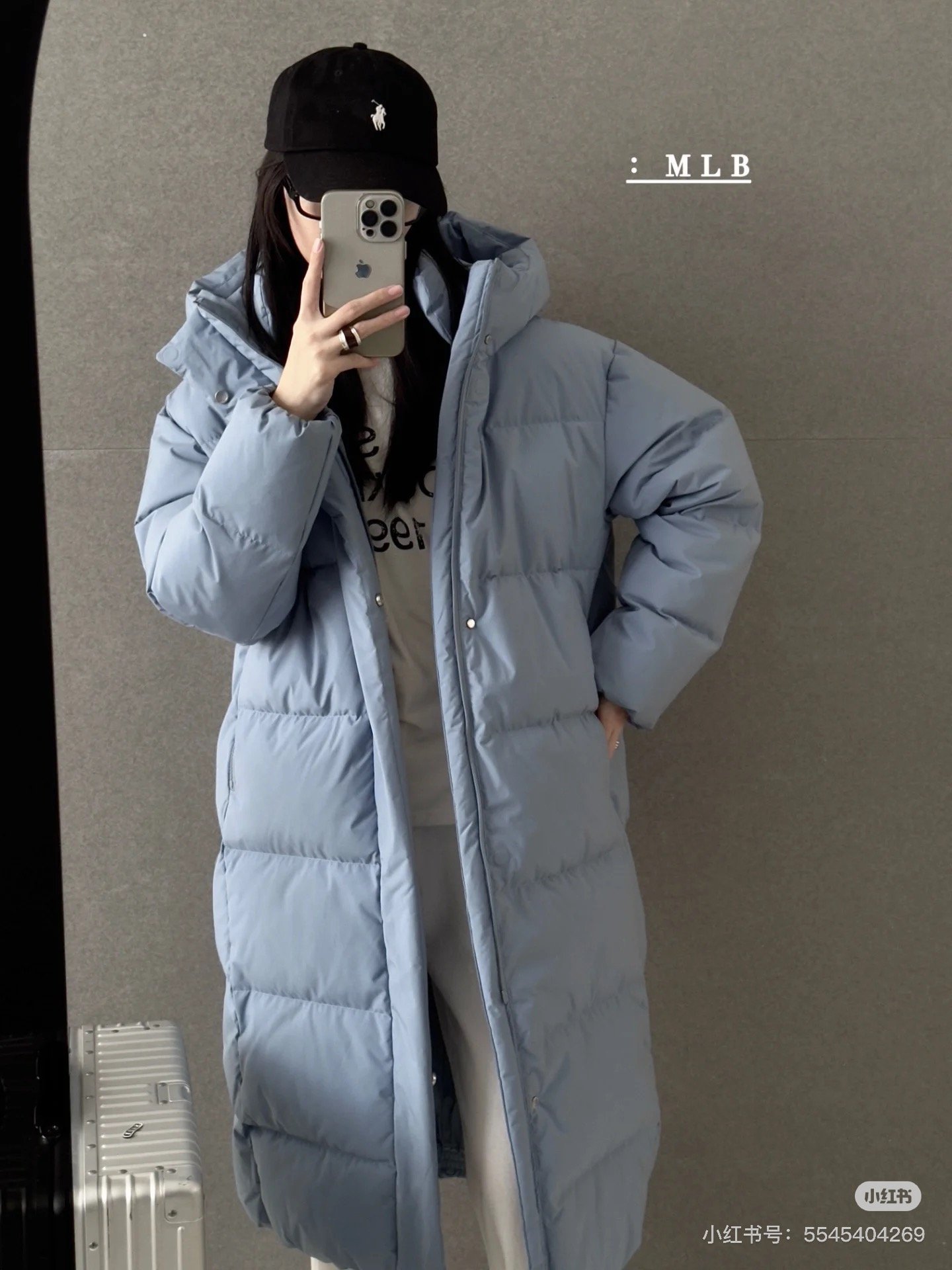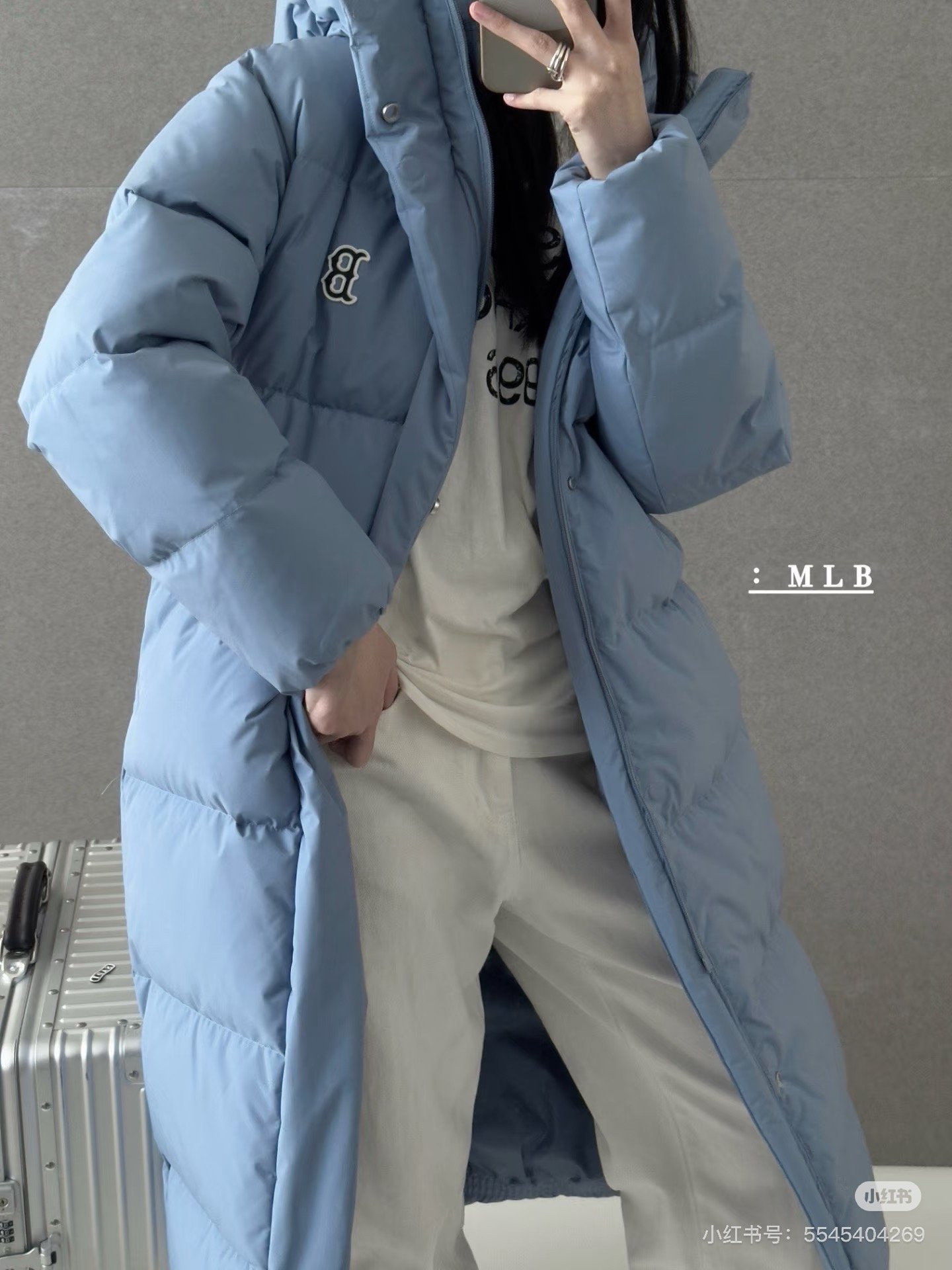 MLB counter synchronized couple long hooded down jacket with NY logo on the back