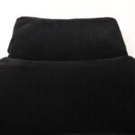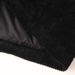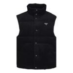 This cropped corduroy down vest embodies Prada’s eclectic personality. The metal triangle logo showcases the iconic element. Corduroy is a production pain point, resulting in significant fabric variations in sheen and nap, leading to substantial waste. Custom-woven and dyed fabric eliminates concerns about color differences. The fabric density ensures exceptional drape. In terms of texture and feel, it surpasses the alloy version, a 1:1 replica made without regard to cost.