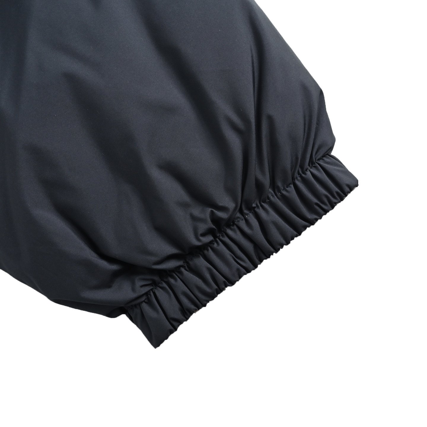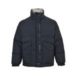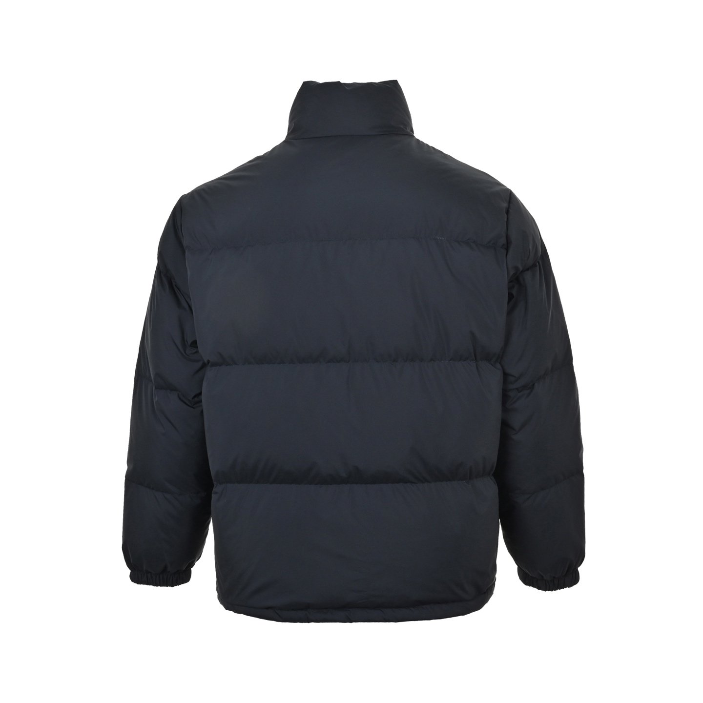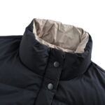 The fabric is a custom-developed high-count, high-density Sephora fabric, a top-grade regenerated cellulose fiber renowned for its silky luster, soft touch, and excellent drape. Through high-count, high-density weaving techniques, this fabric, originally focused on comfort, is endowed with excellent wind resistance, down-proof properties, and abrasion resistance, combining a luxurious look with practical functionality. This fabric choice breaks the limitations of traditional down jacket materials, giving the overall garment a uniquely light and airy feel. A true “reversible” design presents a significant challenge in terms of craftsmanship. It means that every piece of fabric and every seam must be flawless, inside and out. Double-sided processing: All seams undergo meticulous internal finishing to ensure that no exposed raw edges or loose threads are visible, regardless of which side faces outwards. Symmetrical Design: The design of functional components such as pockets, zippers, and buckles must be cleverly integrated into both sides while maintaining aesthetics, requiring extremely precise pattern making and planning in the early stages. No Lining Interference: Since there is no traditional “lining,” the filling is sealed between the two layers of fabric, placing the highest demands on the fabric’s down-proof properties and sewing techniques. The filling is 90% white duck down, one of the gold standards for down quality. “90% down content” means an extremely high down cluster content and very few impurities such as feather shafts. Down clusters can trap more air, forming a highly efficient insulating layer, thus providing several times the loft and warmth of ordinary down, while being lighter in weight. In a reversible structure, ensuring that the down clusters are evenly distributed between the two layers of fabric and do not clump is the core challenge of the down filling process. The stand-up collar design not only enhances the neatness of the look but also strengthens the windproof and warm performance of the neck. Its internal structure needs to be sufficiently stiff to maintain its three-dimensional shape while ensuring comfort against the skin. The precise stitching, perfectly complementing the overall design, not only secures the down feathers and prevents shifting, but the evenness, tension, and pattern of the stitches themselves become important decorative elements, reflecting rigorous industrial aesthetics. Custom-made accessories with three labels. Unisex.