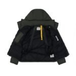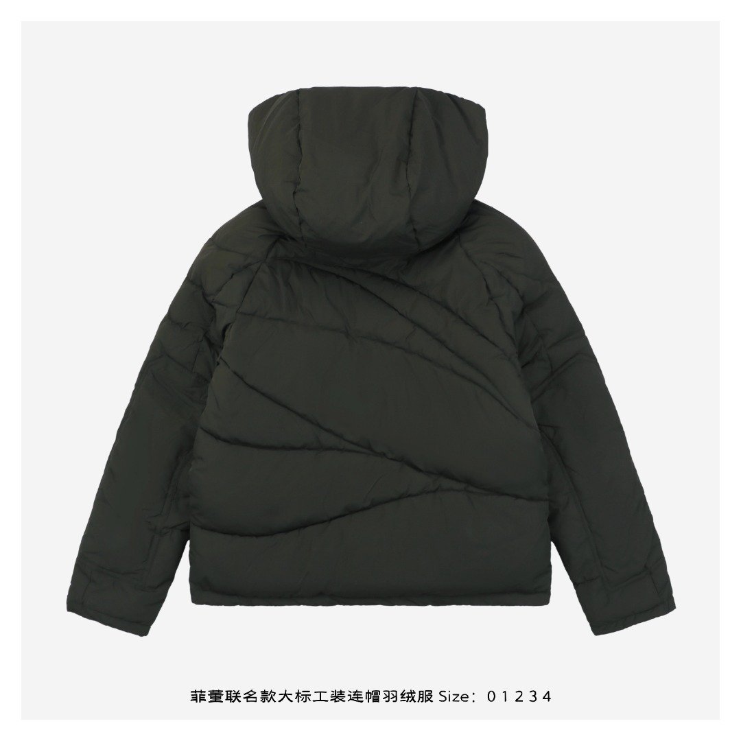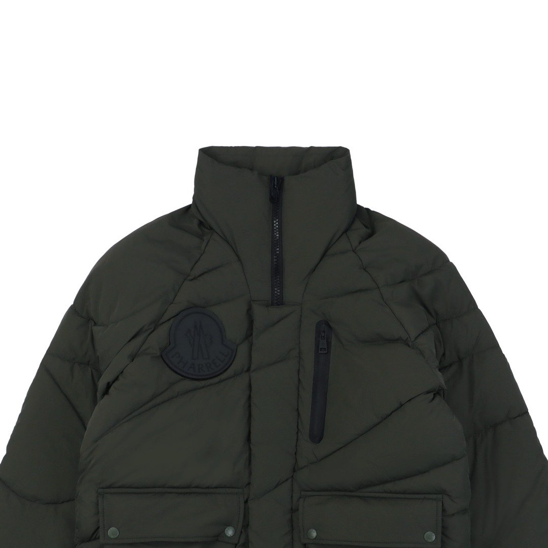 Pharrell The Williams collaboration features a unisex silhouette and multiple styling options, along with a playful logo design. Combining fashion and functionality, the garment is made from custom-woven and dyed high-quality nylon with meticulous stitching, resulting in a lightweight and comfortable feel. The refreshing green color breaks the monotony of winter, adding vibrancy and style. The hood is detachable, and the inner shoulder straps offer multiple wearing options, exuding a sophisticated look. Simple yet elegant, the garment combines stylish design with excellent warmth and comfort, offering both style and warmth. It’s three-dimensional, full, and highly practical, filled with 70% white duck down. Sizes range from 430g to 520g. Unisex, with custom-made accessories and labels.