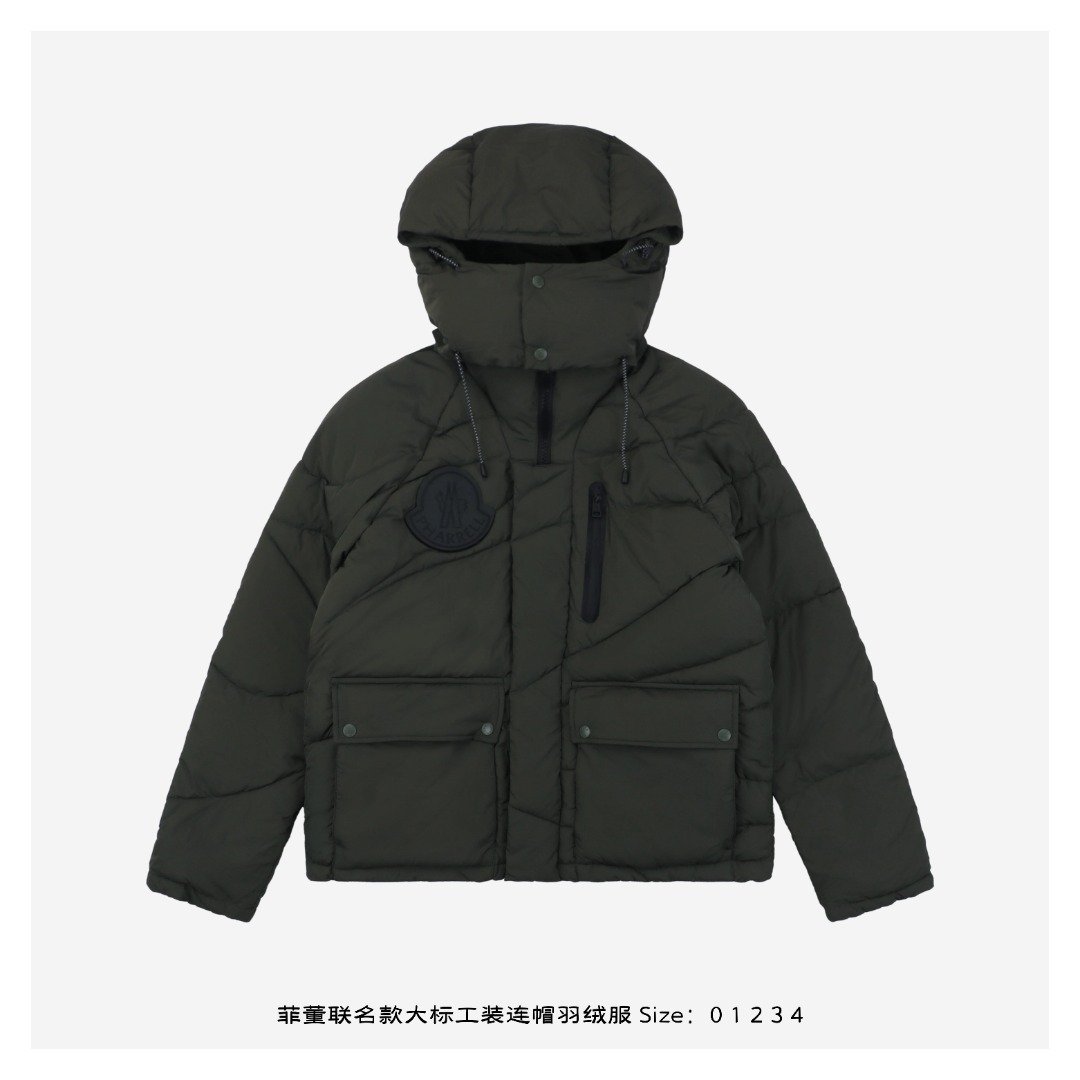 Moncler/蒙口23Fw Pharrell Williams Collaboration Oversized Logo Workwear Hooded Down Jacket