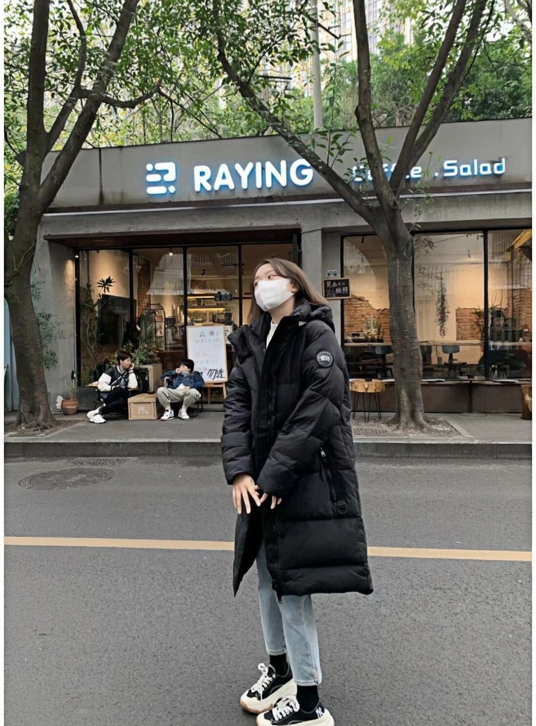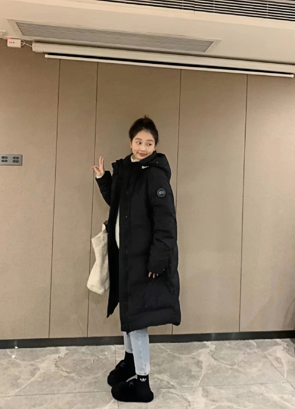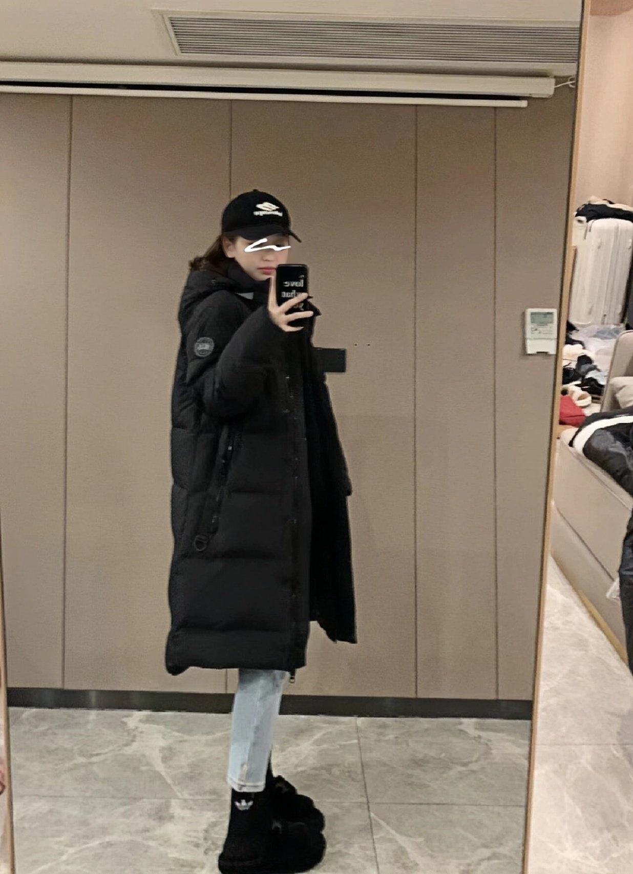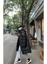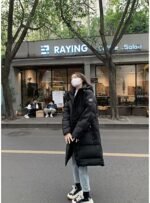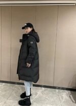 2610LB long hooded down jacket with black label on the sleeve