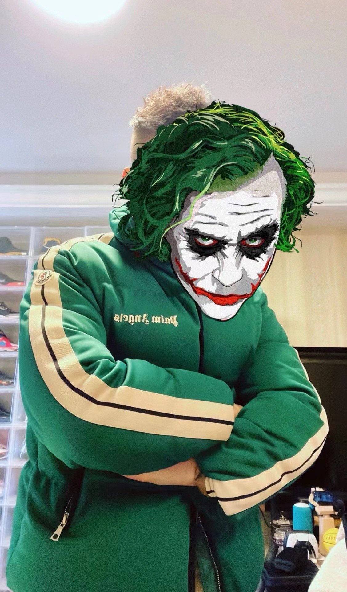 Moncler x Palm Angels FW21 logo color stripe embroidered logo down jacket upper body effect#