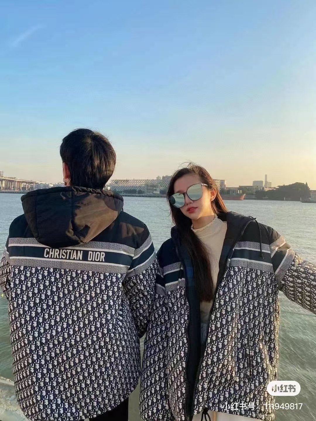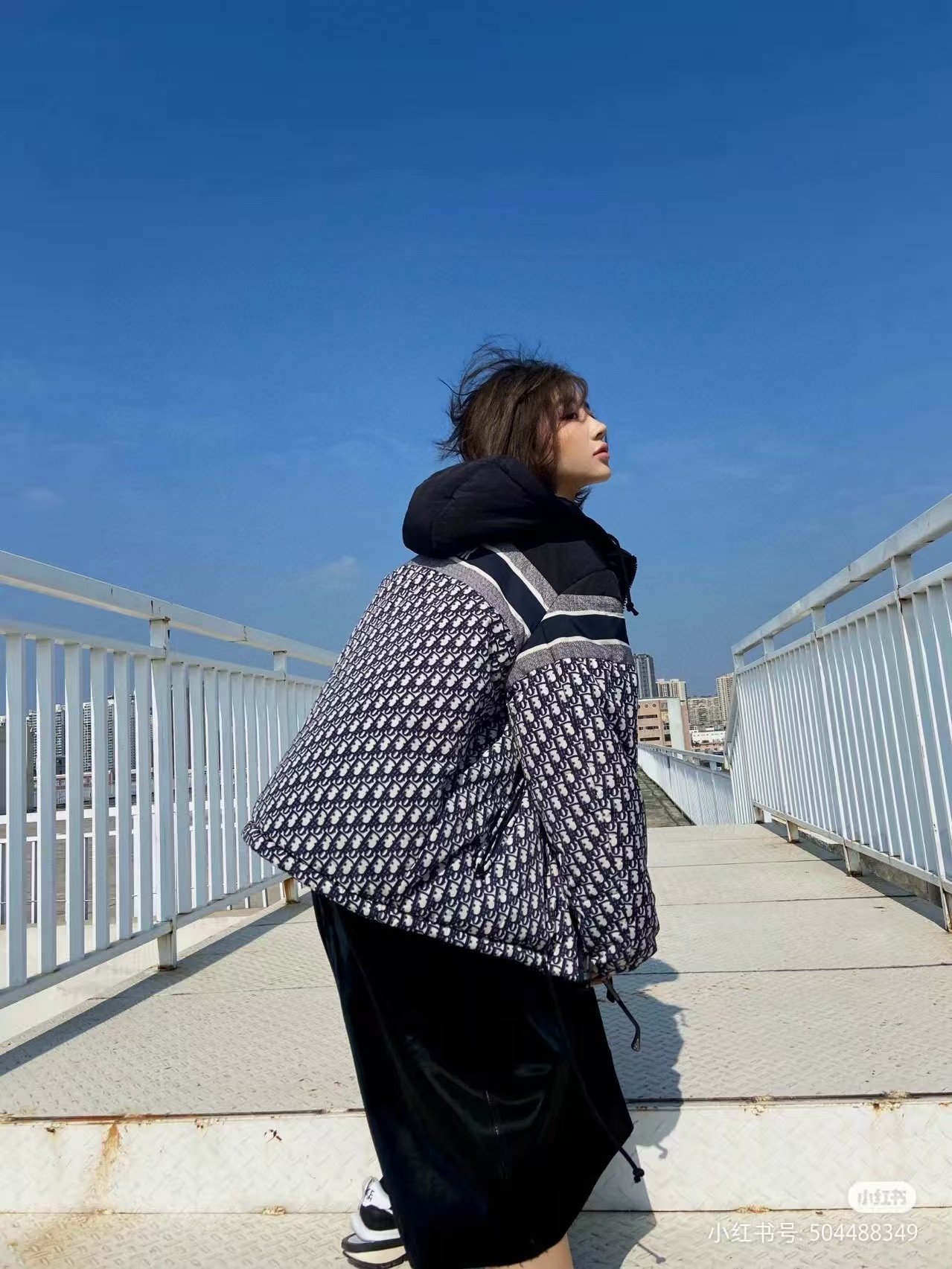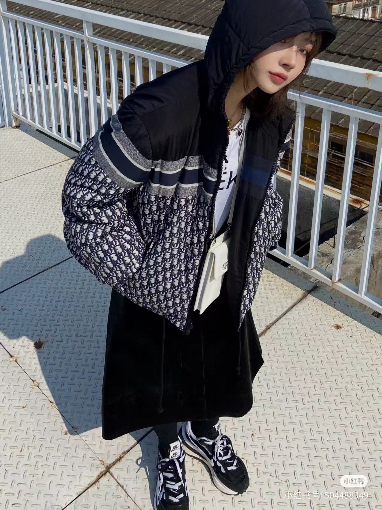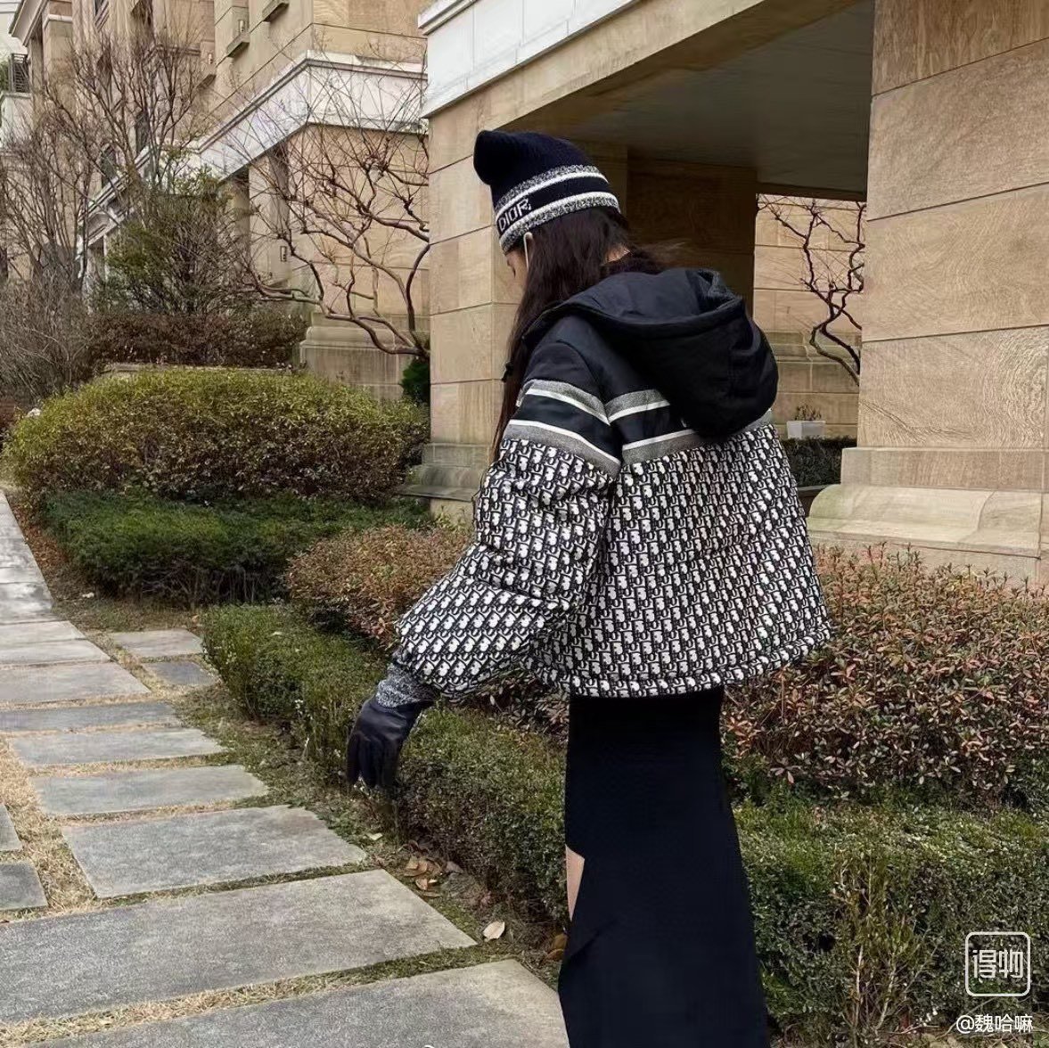 Dior/Dior classic full print old flower double-sided down jacket upper body effect#