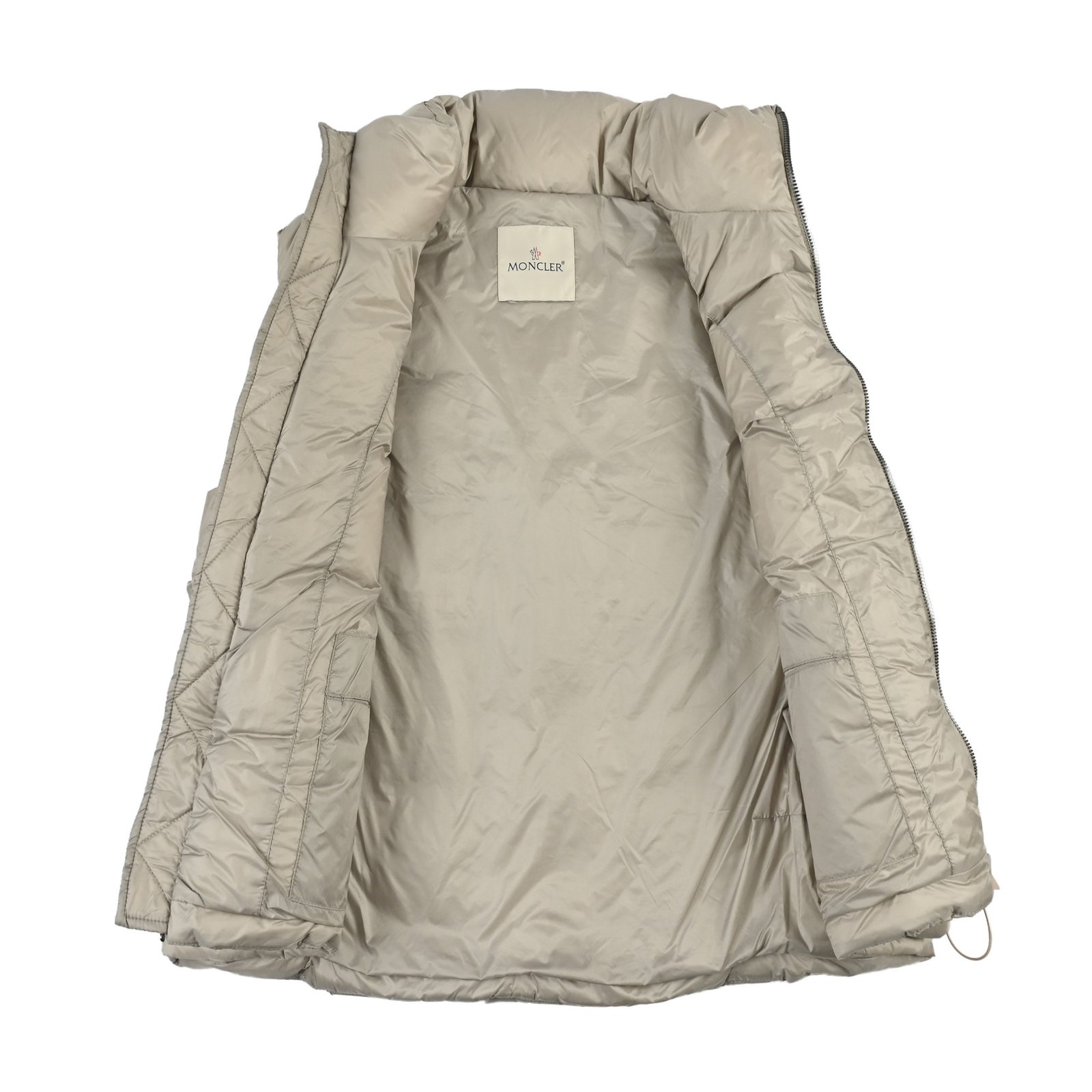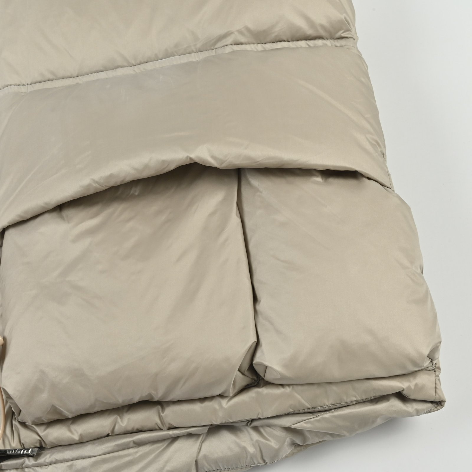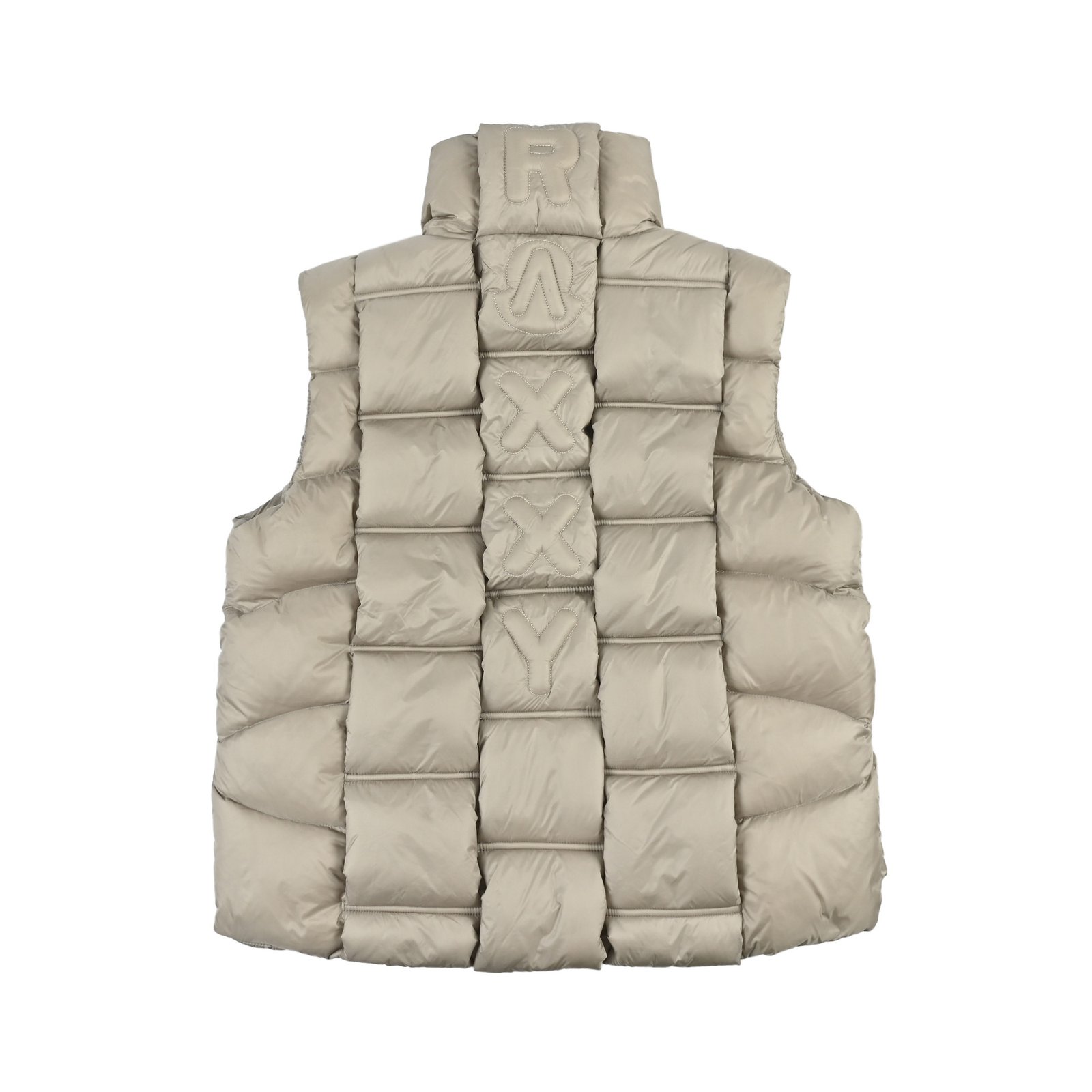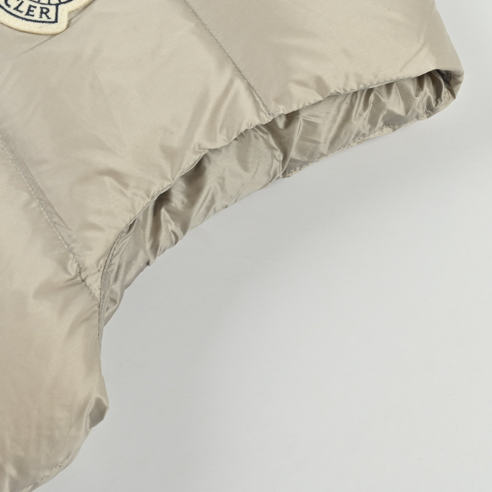 This unisex down jacket is part of the Moncler x Christopher Raxxy collection, featuring decorative elements that evoke the concept of a stairway to dreams. Actresses Zhou Yutong and Wang Anyu embody this “dream staircase” design. This 3D quilted down vest is crafted from lightweight, tear-resistant fabric and was created in collaboration with Christopher Raxxy. This down jacket’s design is inspired by a spiral staircase, with decorative elements representing the winding steps of fate.