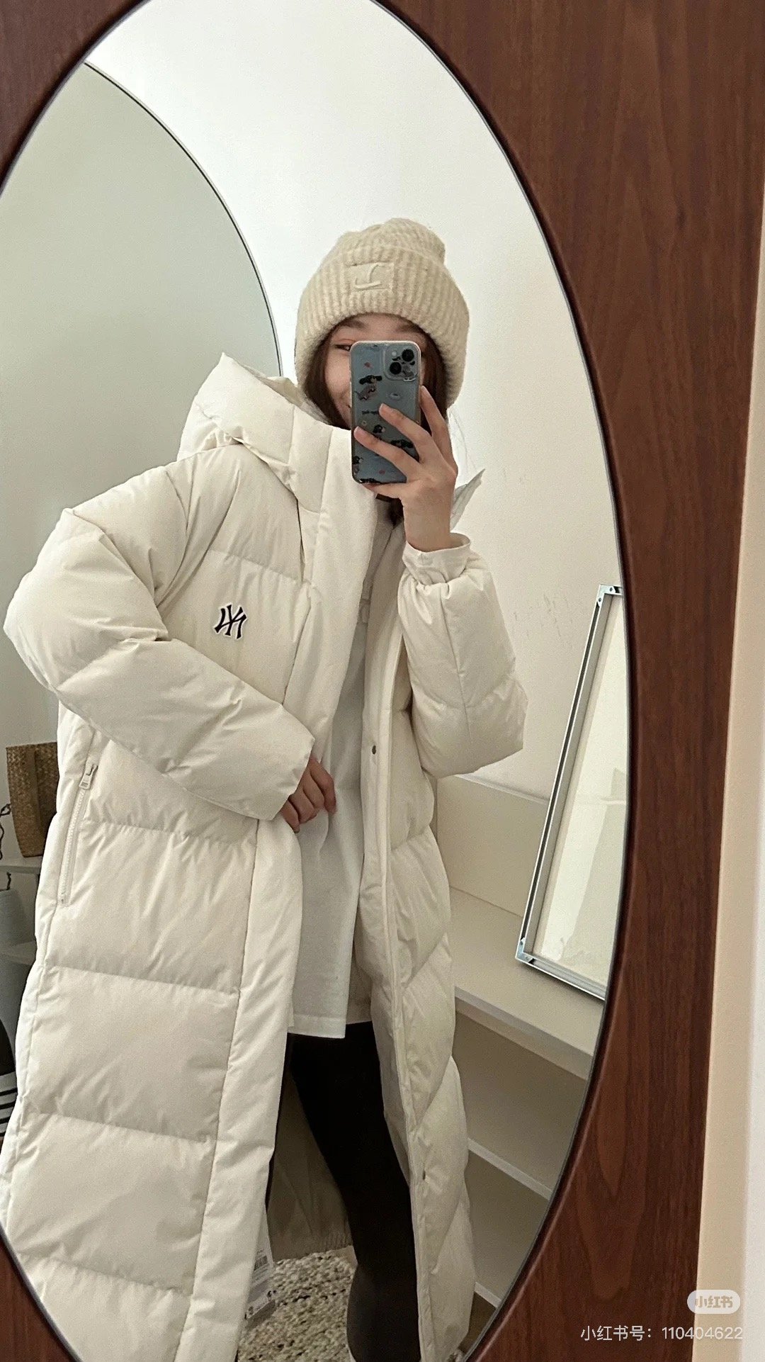 MLB counter synchronized couple long hooded down jacket with NY logo on the back