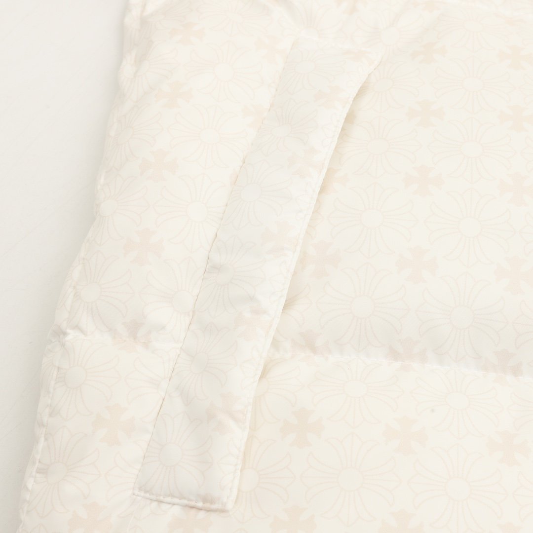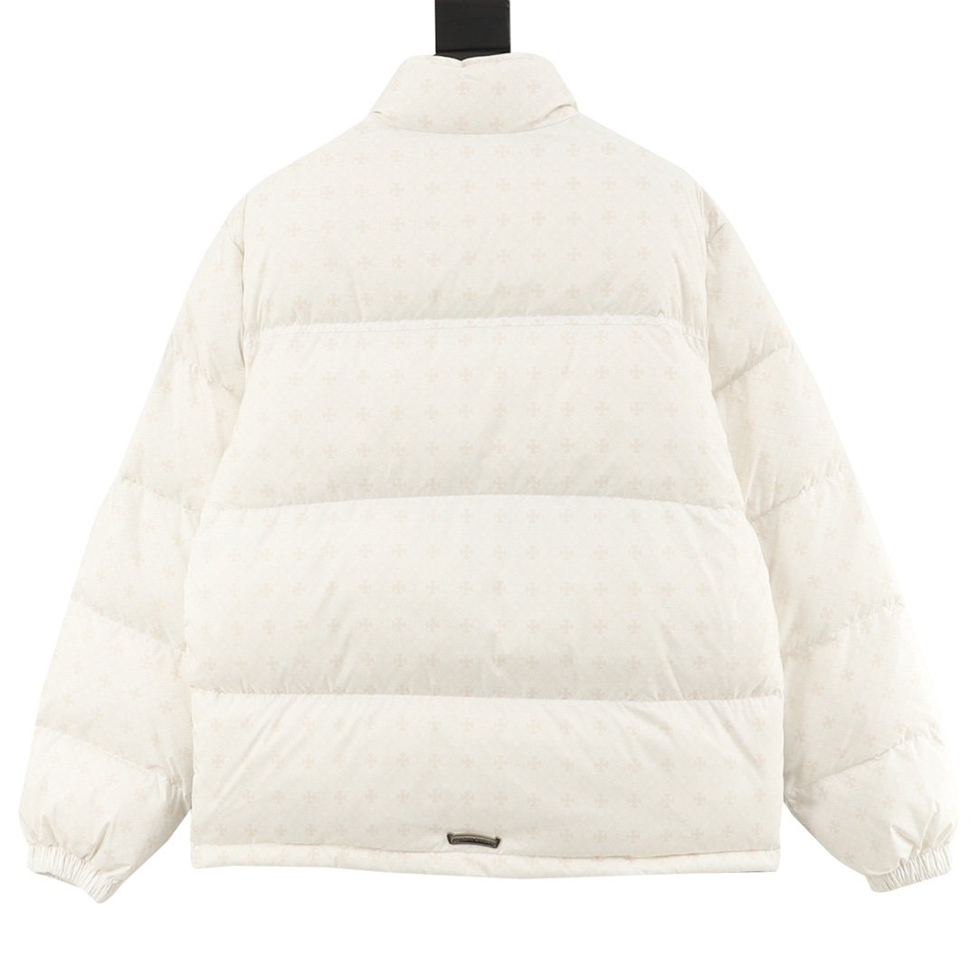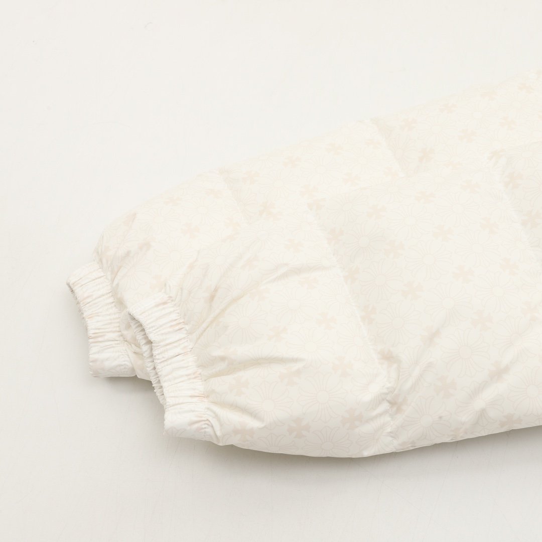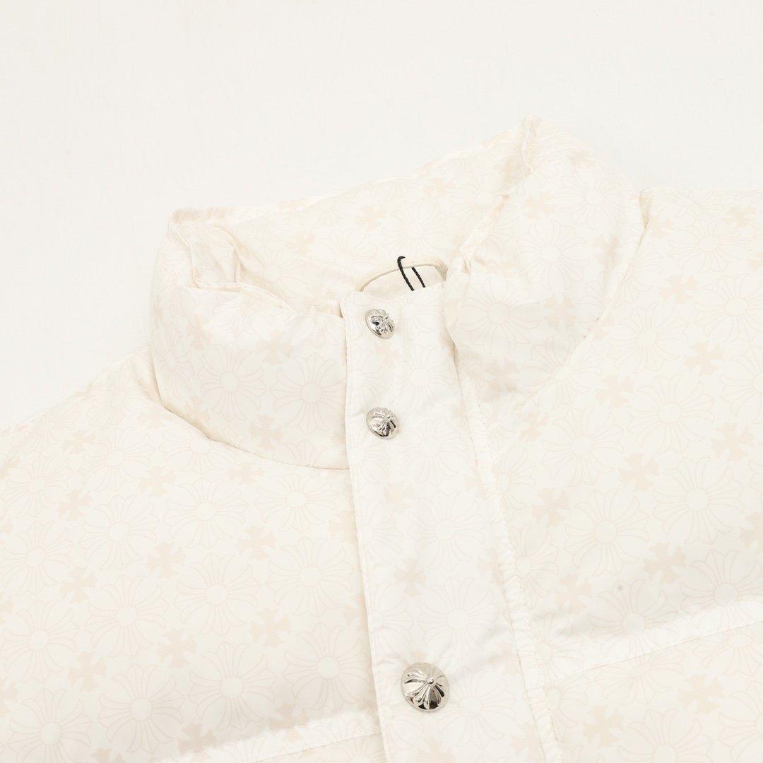 High-quality, evenly filled down ensures excellent warmth. The fabric features a unique jacquard pattern, creating a rich, three-dimensional visual effect that is both beautiful and stylish. High-quality, waterproof, stain-resistant, and breathable fabric ensures practicality and comfort. Attention to detail is evident in the excellent stitching, with even and fine stitches, free of skipped or missing stitches, showcasing superior craftsmanship. The Chrome Hearts filling, a signature feature of the brand, adds to the garment’s aesthetic appeal. Features such as windproof cuffs and an adjustable hem enhance convenience and comfort. High-quality materials are used for zippers, buttons, and other hardware, resulting in a smooth, burr-free surface for durability.