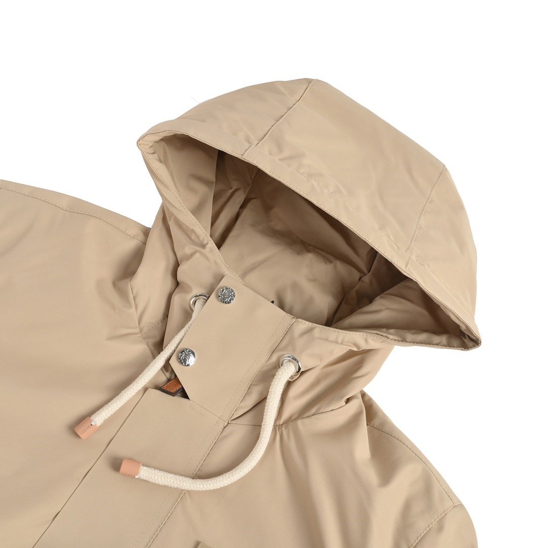 Custom-supplied fabric, waterproof and windproof, soft and comfortable. Features a genuine leather main label on the chest. The inner lining is made of 90% down and 10% feathers, providing high loft, lightweight comfort, and superior warmth. All hardware includes the brand logo, and the cuffs also feature a brand logo and ribbed design for windproof and warmth!