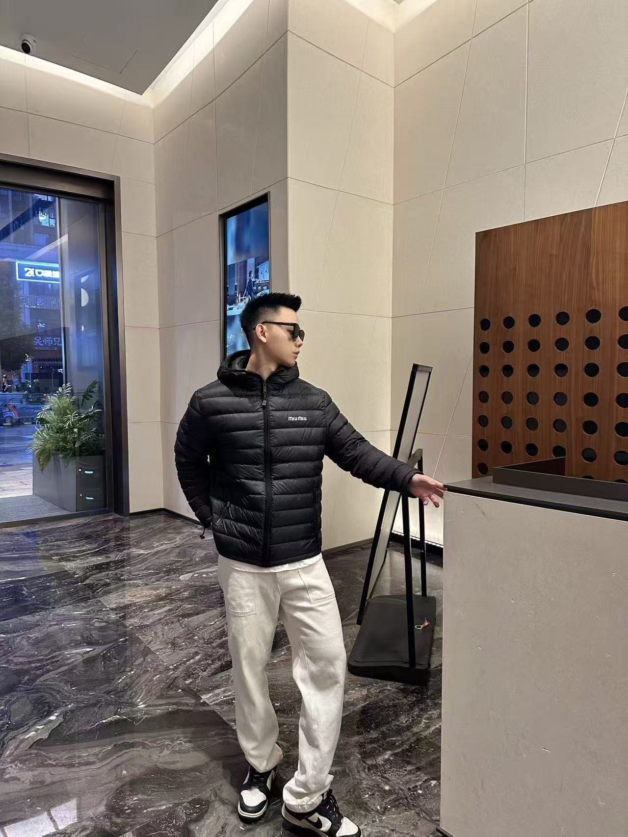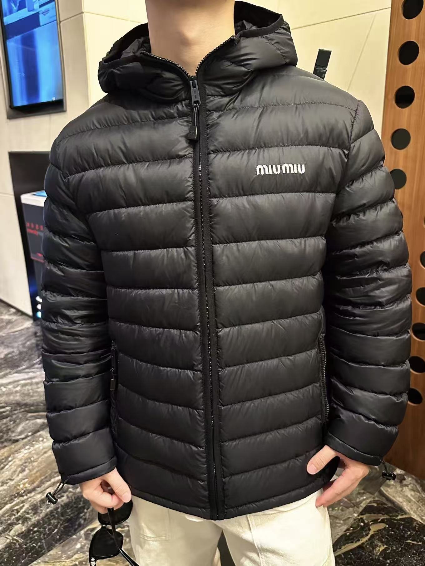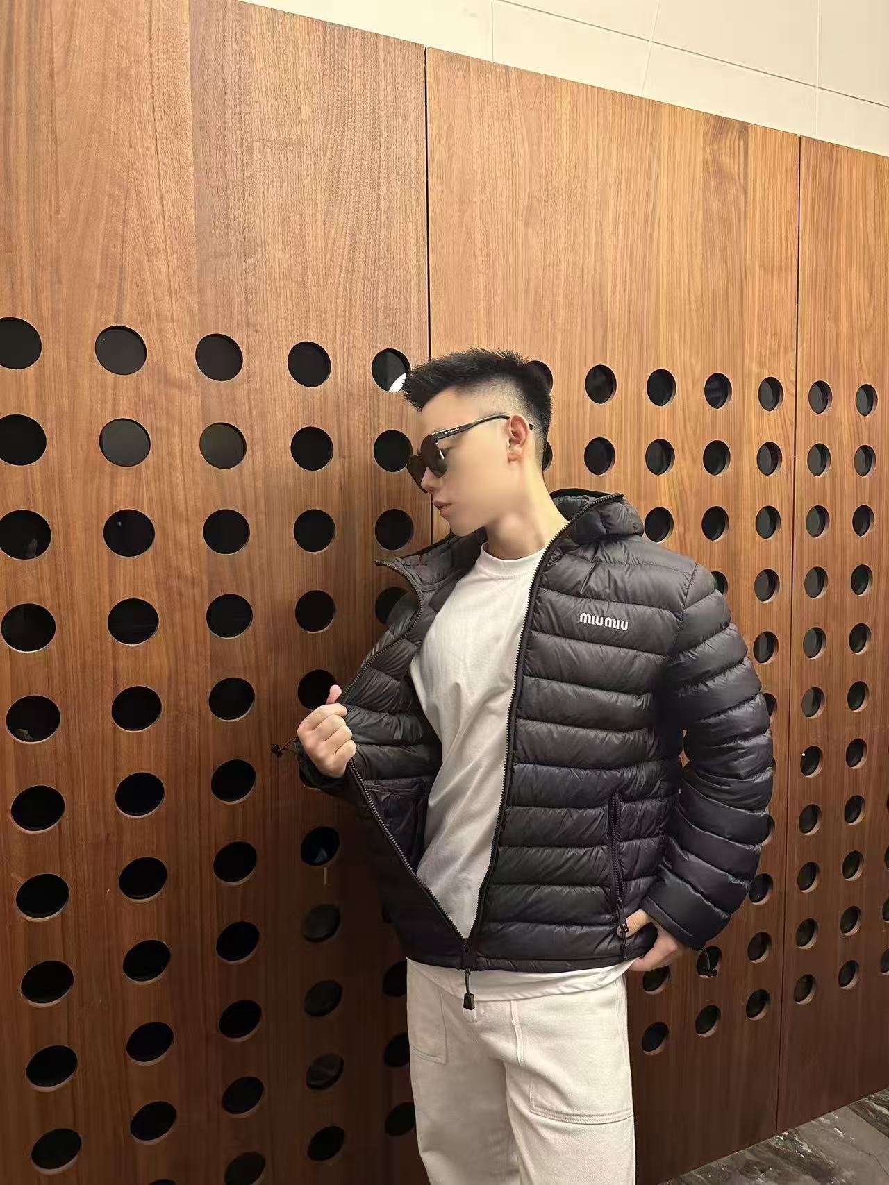 MIU MIU MM Letter Embroidered Hooded Down Jacket – Outfit Inspiration