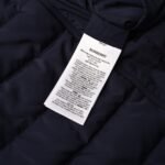 Uses a high-density polyester lining of 300T or higher (such as twill spun polyester) to ensure no down leakage and maintain lightweight quality without compromising loft. Filled with 900 fill power white duck down (85%-90%), ensuring a full, three-dimensional look without being overly bulky, achieving a naturally fluffy and non-puffy visual effect. Uses YKK brand size 5 nylon zippers (matte dark gray/black, close to the fabric), with fine, flat teeth, a simple square zipper pull, and an etched brand logo. A 1.5cm wide, same-color fabric windproof flap (double-layered, with a thin cotton strip inside for added crispness) is stitched to the outside of the zipper. The cuffs feature a faux two-piece design (outer cuffs are folded, inner cuffs are ribbed), with two 12mm diameter metal buttons (matching the pocket snaps) spaced 3cm apart. The buttonholes are handmade (double-stitched edges, precise hole diameter). The leather is made of top-grain calfskin (0.8mm thick), with a matte aniline finish and oiled edges (0.3mm thick, smooth and rounded, color matching the label). The brand logo (knight emblem + text) on the leather label is embossed and hot-stamped (gold/silver). First, a recessed engraving (0.1-0.2mm depth, clear and three-dimensional) is created on the leather surface using a copper mold (temperature 120-150℃, pressure 3-5kg). Then, gold/silver metallic foil (matte finish, avoiding gloss) is filled into the recessed design. A second hot-pressing process (80-100℃) bonds the metallic foil to the leather, ensuring the design is resistant to friction and won’t peel off. A high-strength, environmentally friendly adhesive (such as neoprene) is applied to the back of the label, and it’s then hot-pressed (60-70℃, pressure 2kg, time 10 seconds) to secure it above the pocket. The edges are then hand-stitched with 0.3mm fine nylon thread (1mm stitch length, stitches hidden within the curved edge of the label, almost invisible) for double fixation to prevent detachment.