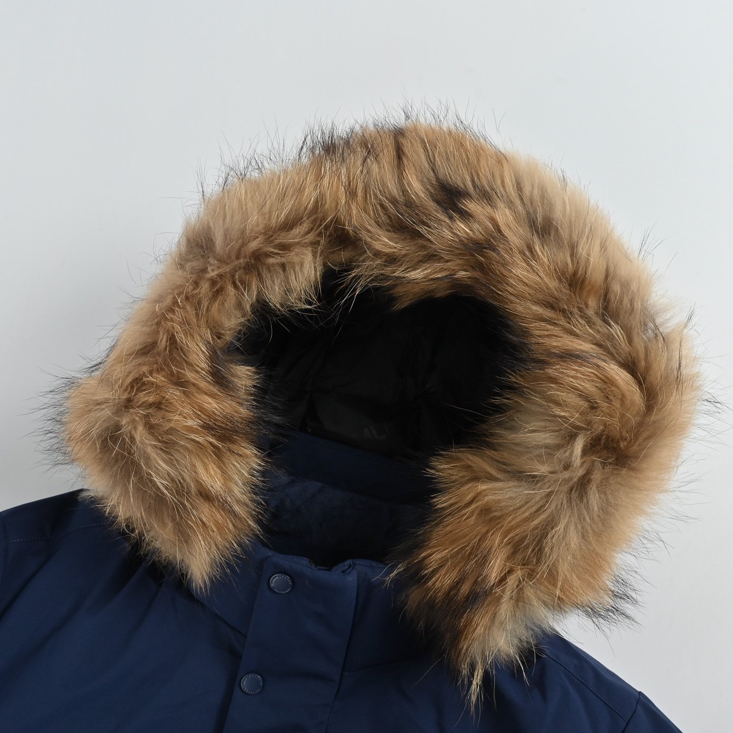 Filled with white duck down, with a genuine fox fur collar, super warm. A favorite of many Korean celebrities as their group outfits, it must be the best! This down jacket features a double-layer down-proof lining design, providing excellent windproof performance and keeping you incredibly warm in winter! Filled with white duck down, it has high loft, making it suitable even for temperatures below -20 degrees Celsius. The stand-up collar and hood design allows you to pull the collar up high and keep your hands warm in your pockets while outdoors.