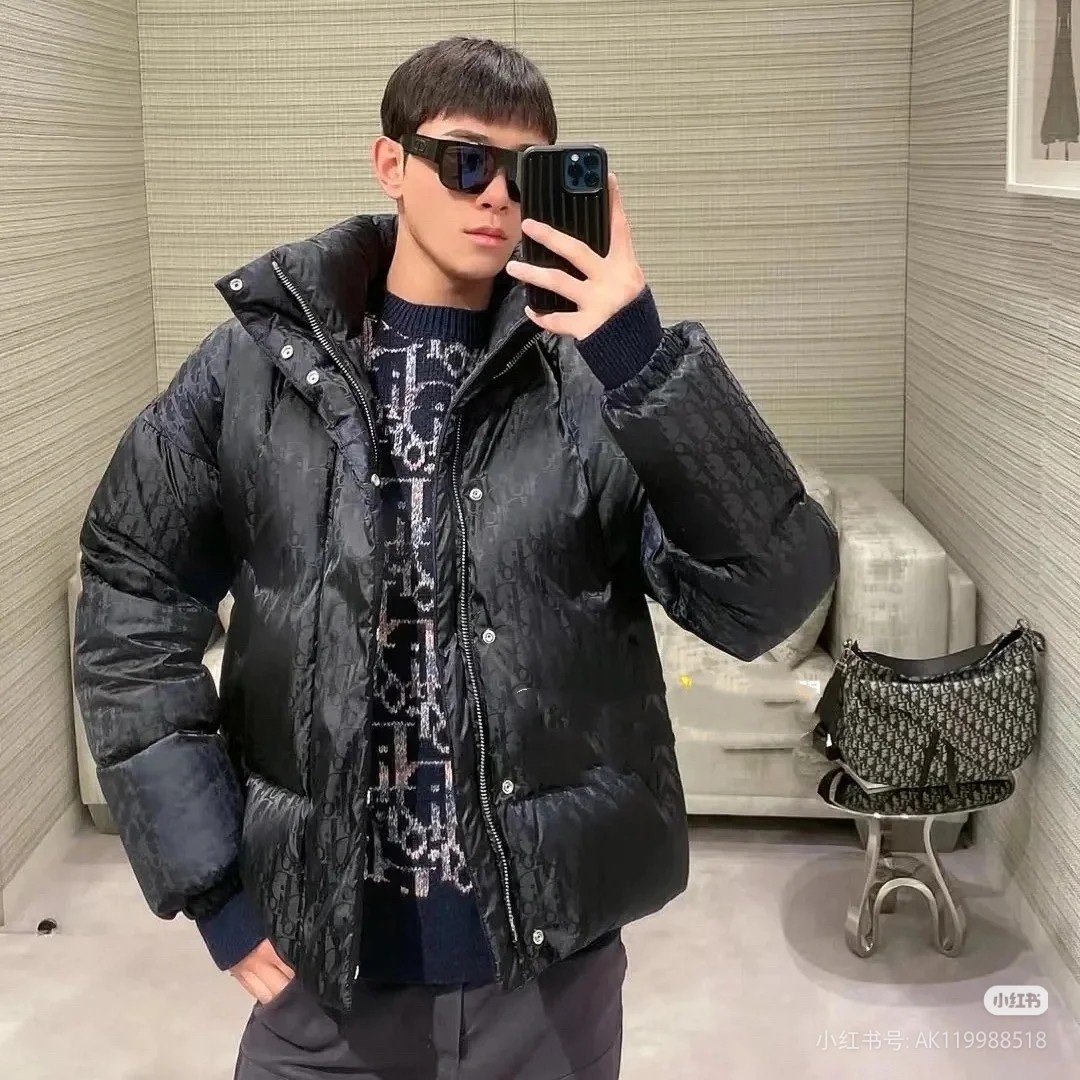 Dior 23SS New Stand Collar All-over Monogram Down Jacket – On-body Look #
