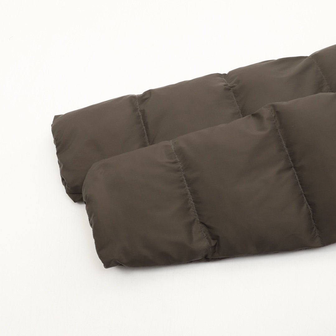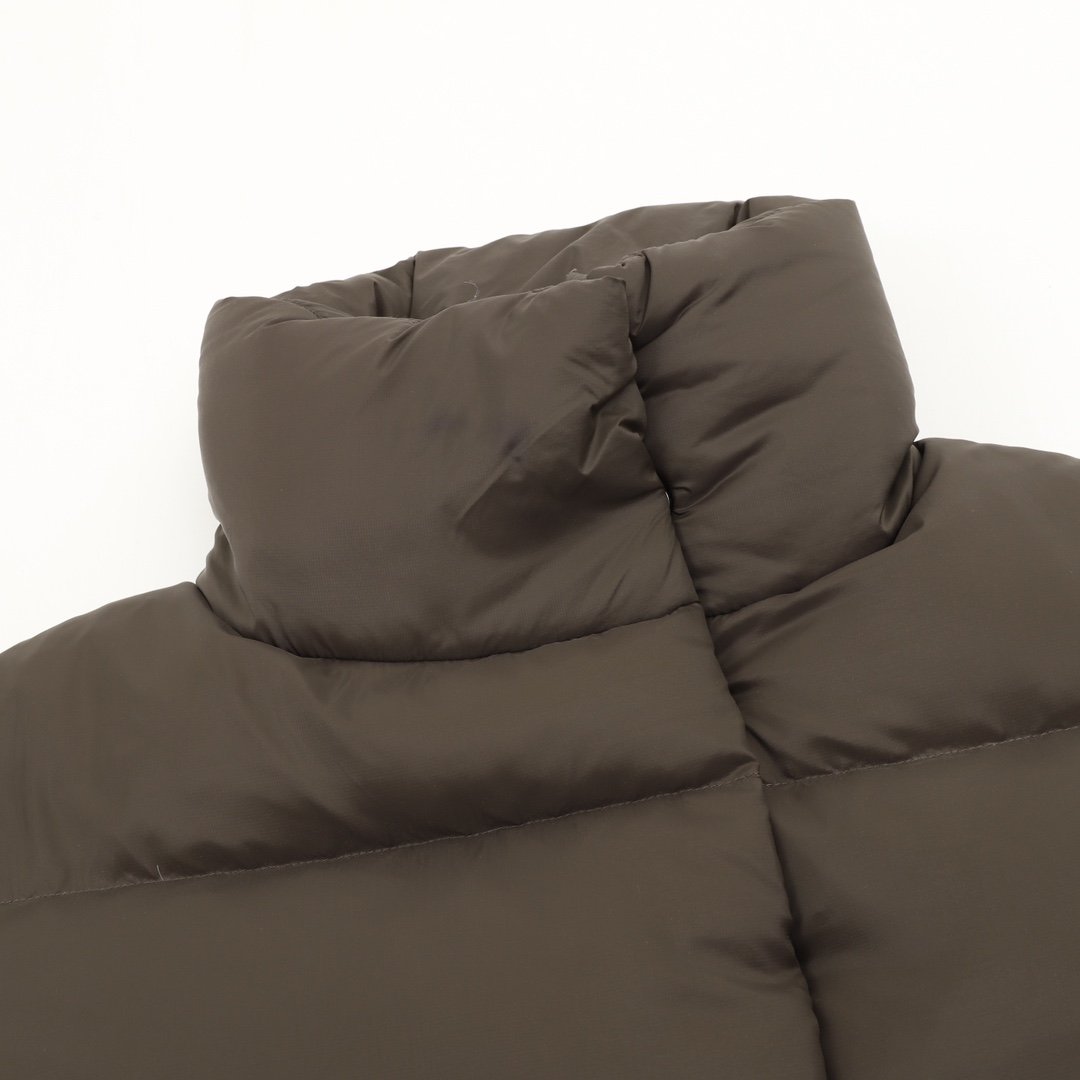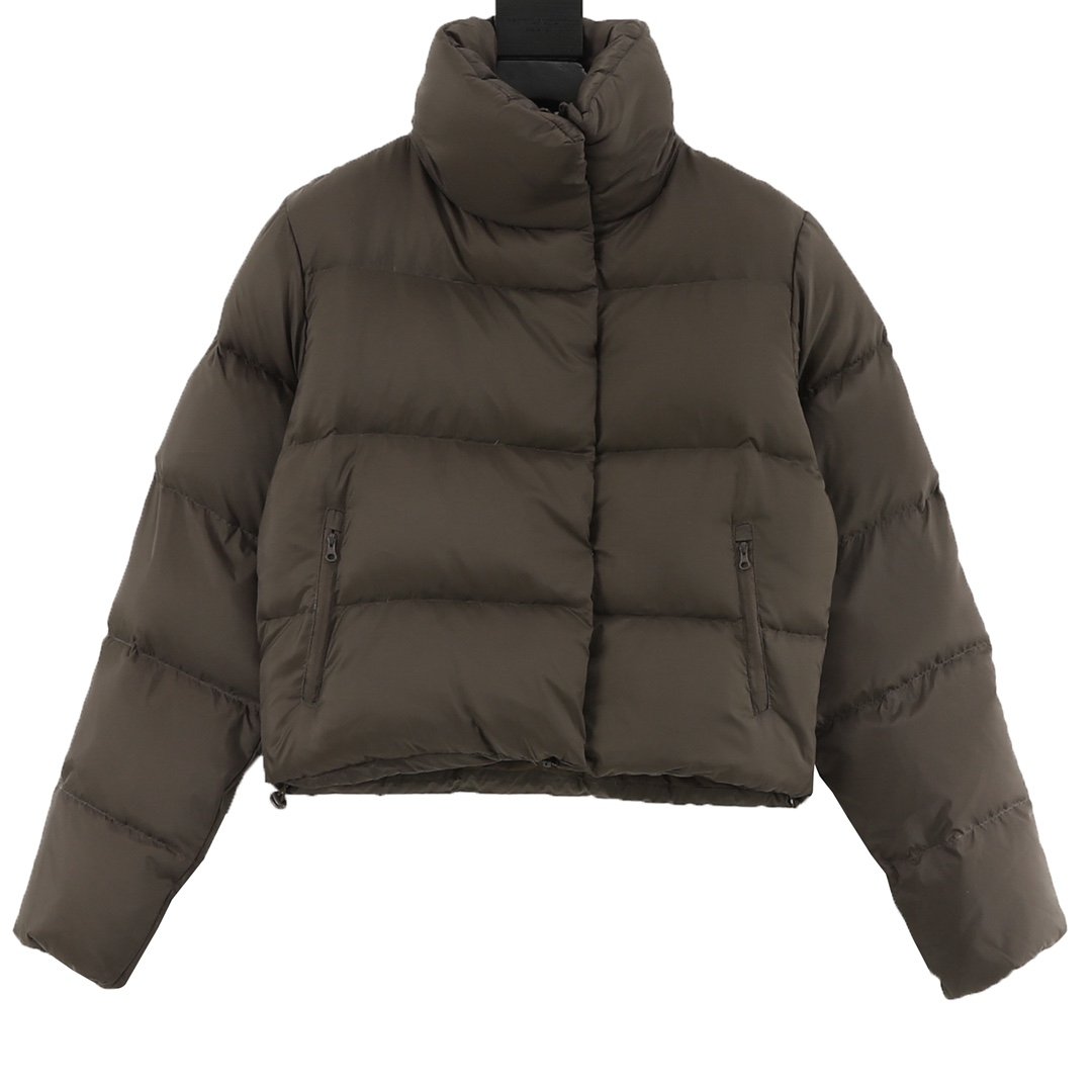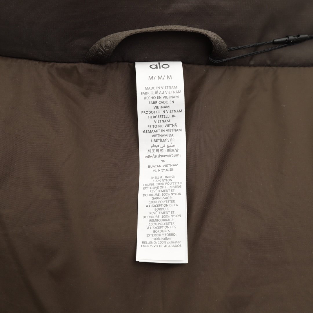 ALO yoga short down jacket with gold label and stand-up collar