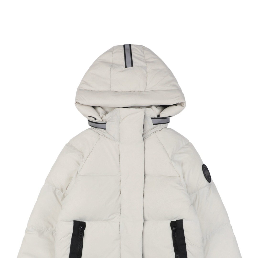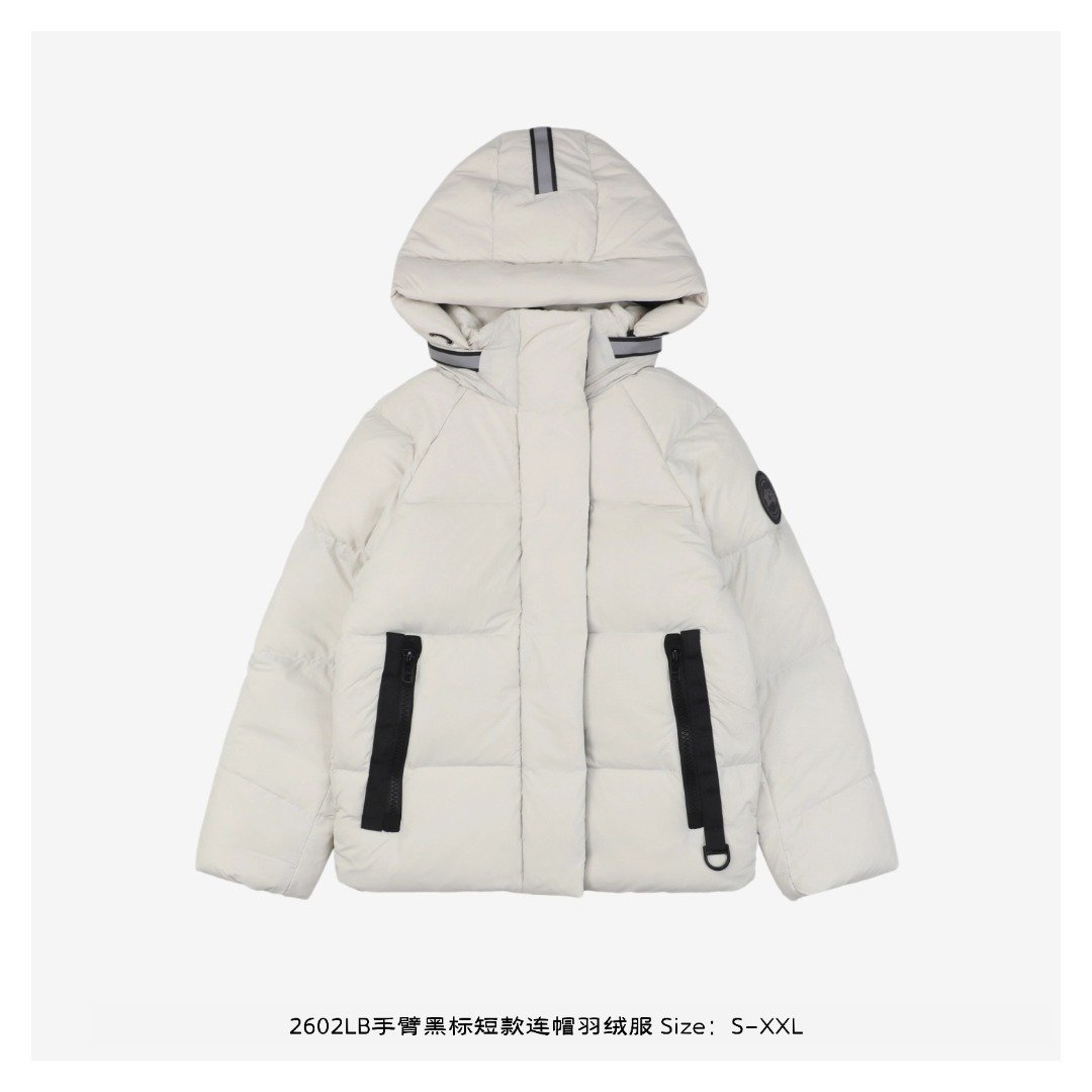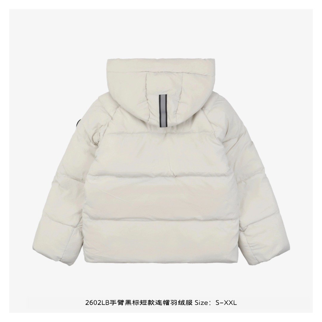 Cantonese 2602LB Short Hooded Down Jacket with Black Label on Arm