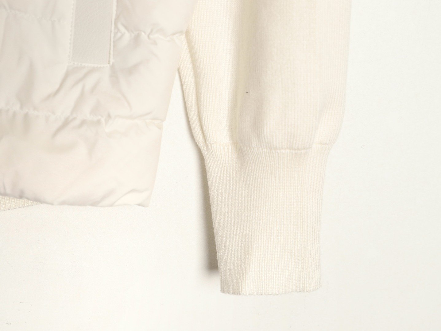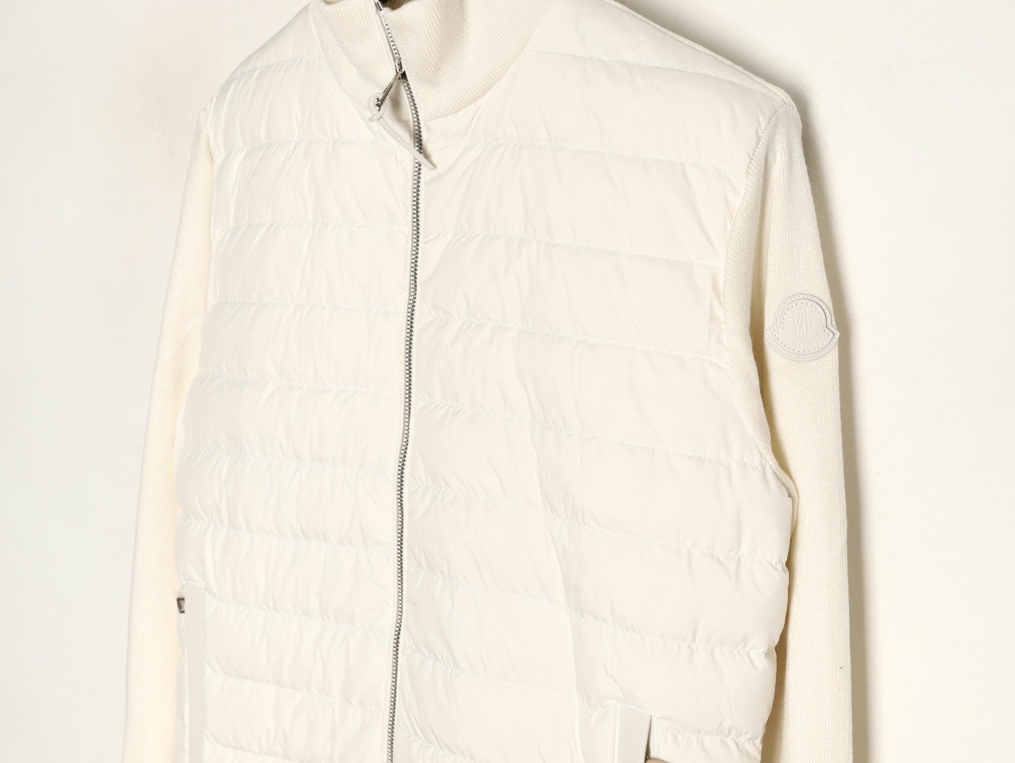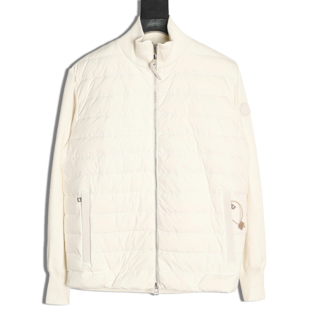 Moncler’s new 24s sleeve-stitched knitted stand-up collar lightweight down jacket. Autumn/Winter new down-stitched jacket. Down filling and practicality, with the addition of trendy stitching elements. The short, solid-color style exudes a sophisticated feel! Comfortable, stylish, and versatile! White and black. SIZE: S-XL.